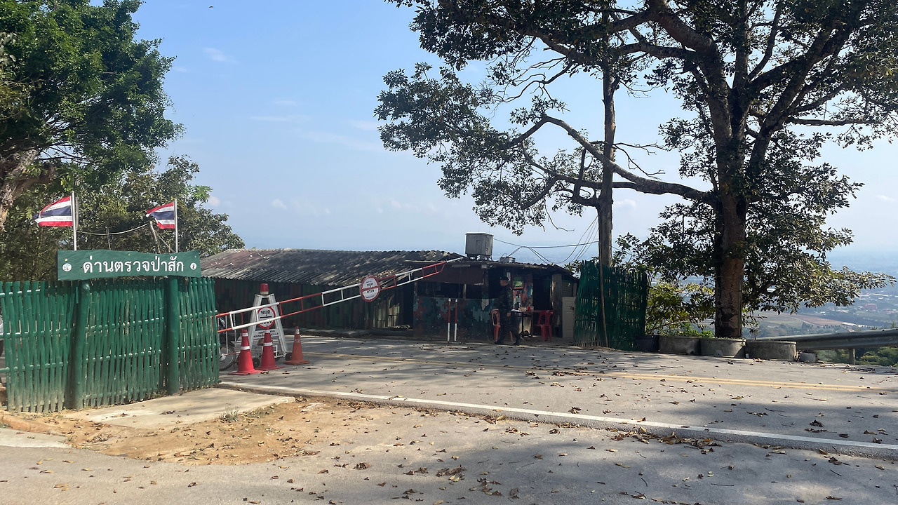 이곳은 오토바이 여행자들이 아니고서는 굳이 찾을 일도, 방법도 없는 듯하다. 검문소에 근무하는 경찰들은 따로 숙소도 있고 경비견들도 있는 숙소가 옆에 위치해 있었다. 이곳을 떠나 아래쪽에 있는 국경에서 사진을 찍고 주유를 한 다음 이동하기로 했다. 이곳 역시 사진을 찍는 태국인들도 많이 보였다. 우리도 사진 한 장씩 남기고 다음 목적지인 추이퐁 차 플랜테이션 농장으로 발길을 옮겼다.