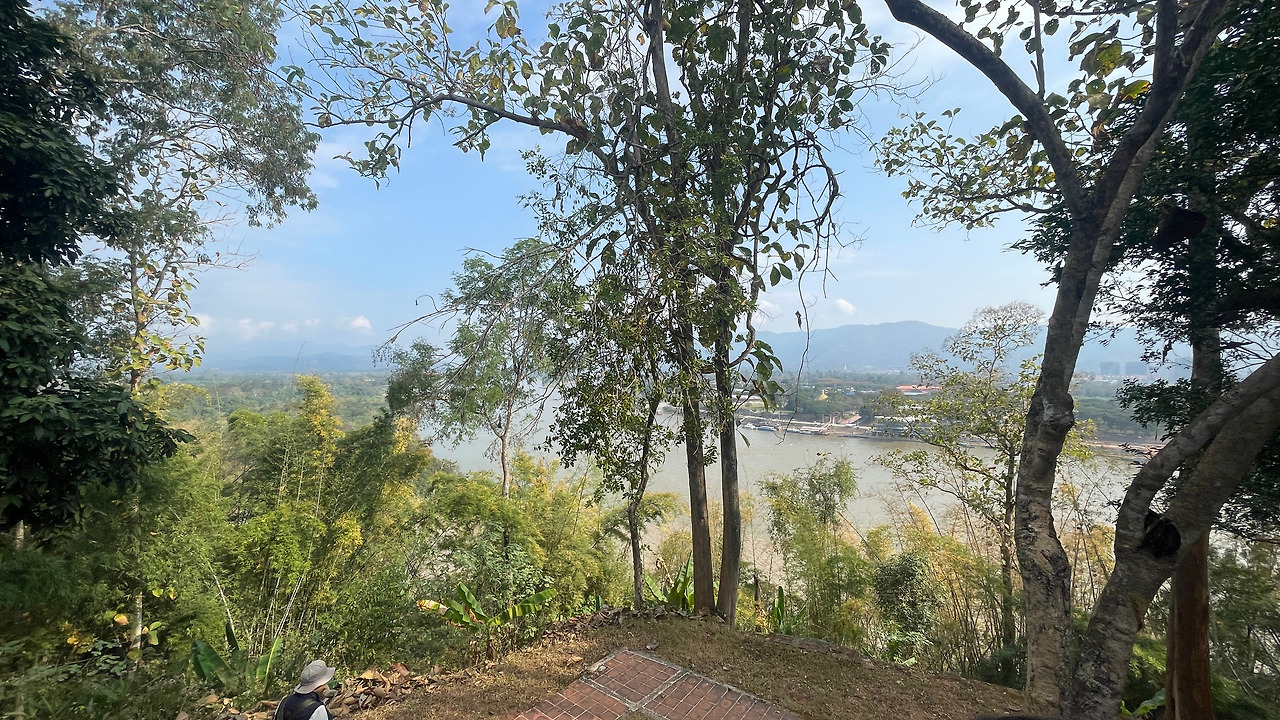 이후 바로 옆에 있는 사원을 찾아 좀 더 높은 곳에서 풍경을 바라보기 위해 계단을 올랐다. 아침 9:30 경이라 관광객이 거의 없어 조용한 사원의 느낌을 충분히 느낄 수 있었다. 오히려 이제는 골든트라이앵글보다 이런 고즈넉한 조용한 사원이 더 맘에 드는 나이가 되었나 보다. 사원은 크메르 양식과 유사하게 건축되어 있었고 골든트라이앵글 뷰포인트도 친절하게 표지판으로 안내되어 있었다.