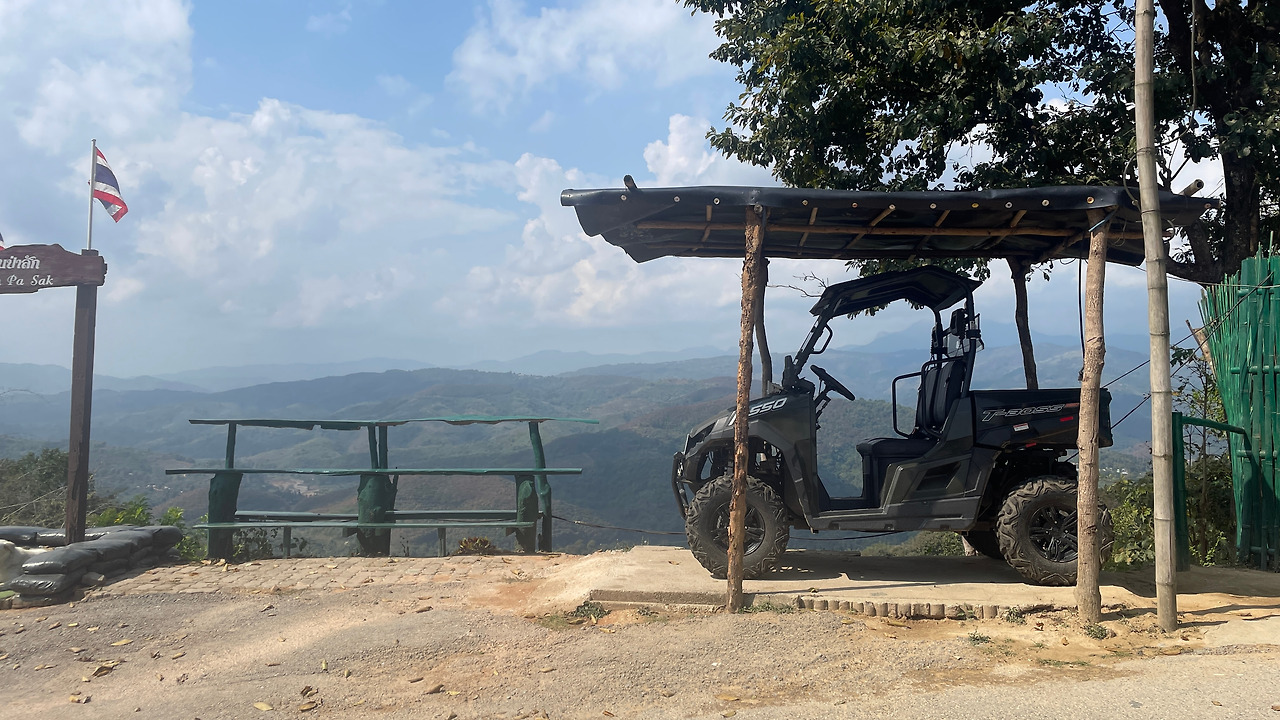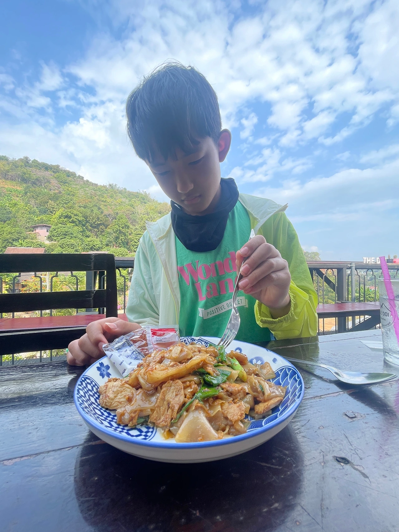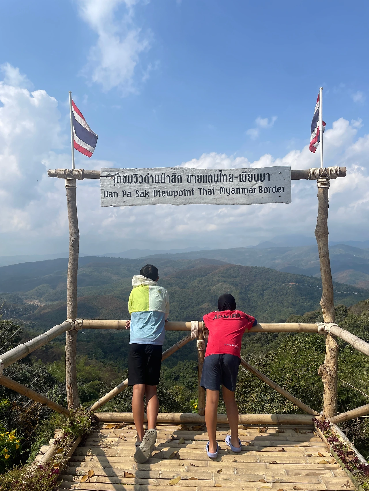 사원을 관람하고 2km 떨어진 곳에 위치한 아편박물관을 관람하려 했지만 월요일은 휴관이었다. 바로 오토바이를 달려 태국 최북단 미얀마 국경이 있는 매싸이로 30km를 달렸다. 가는 길이 주로 마을을 끼고 있어서 좀 더 정겨운 태국의 마을들을 볼 수 있었다. 40분을 달려 도착한 태국과 미얀마의 국경은 활발한 물류가 이루어지는지 국경 검문소에 차들이 엄청 많이 정차해 있었다. 우리는 통과하지 못해서 왼쪽 샛길로 빠져 산 위에 있는 단파삭 전망대로 향하기로 하고 중간에 식당에 들러 점심을 먹기로 했다. 현재 절판을 지나는 여행에서 모두가 만족한 최고의 식당이었다.