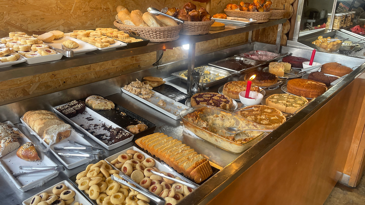 각종 육류, 베이커리, 커피, 후식이 즐비하다. 점심 230밧