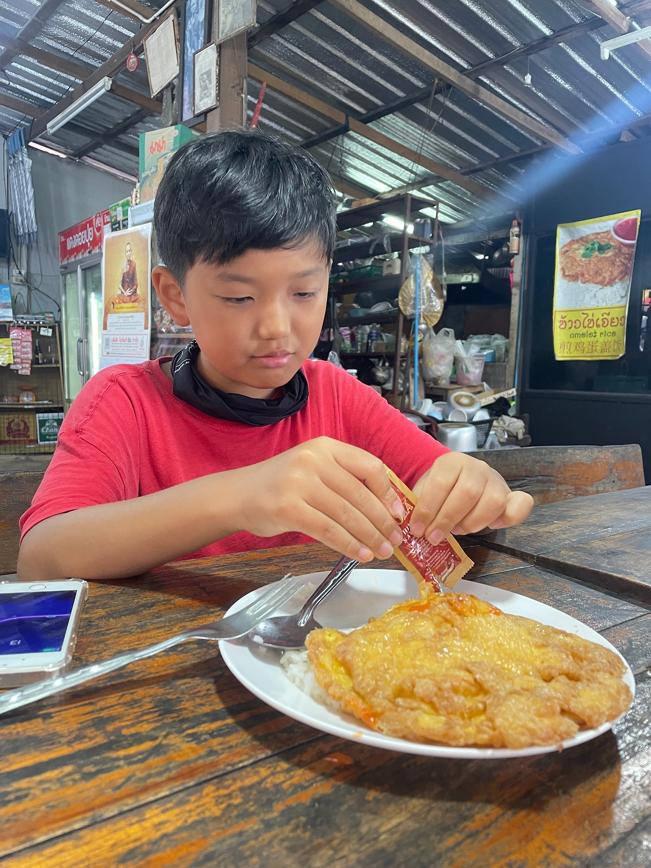 뒤에 탄 큰 놈은 다리 때문에 추웠고, 앞에 탄 둘째는 앞에서 몸으로 바람을 맞느라 추위에 떨었다. 간단하게 마을을 한 바퀴 돌고 아침식사를 하기 위해 입구 쪽으로 내려왔다. 입맛 까다로운 둘째의 국수가 안 된다고 하여 오믈렛으로 시켜 아침 식사를 했다. 첫째는 향신료 향이 나는 국물도 이제는 거부하지 않고 먹는 경지에 이르렀다.