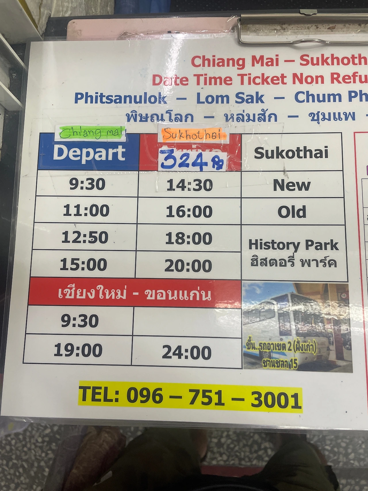 치앙마이에서 수코타이로 이동하는 버스는 코로나 이전까지 거의 회복되어 보였다. 자료를 찾을 땐 하루 2회만 운영하는 것으로 파악했는데 실제 왔을 땐 하루 4편이 운영되고 있었다. 터미널 2에서 표를 예매하고 도로 건너 맞은편 치앙마이 아케이드에서 탑승을 한다. 표는 하루 이틀 전에 예매하는 것이 좋다. 중간중간 사람들이 타고 내리기를 반복한다. 가장 대표적인 승하차 지점은 람빵과 탁이다. 어느 버스를 타던 히스토리 파크(올드 시티)를 지나니 탈 때 얘기를 하면 세워준다. 9:30과 11:00 버스의 경우 말을 안 하면 올드시티보다 10km 떨어진 수코타이 시내에 도착한다.