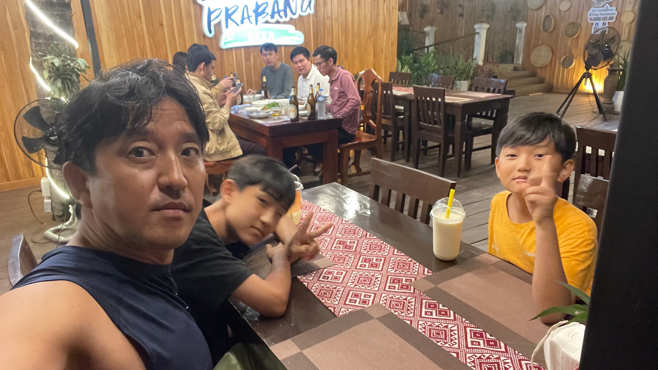 원래 출발 시가뉴보다 30분이 연착되었지만, 에어아시아는 문자도 보내주고 나름 노력을 하는 여행사처럼 인식되었다. 날씨가 흐려 난기류가 많이 발생한 듯 기체가 많이 흔들리는 경우가 있었지만 예상 시각에 비행기는 맑은 날씨의 라오스 루앙프라방에 무사히 도착했다. 라오스 공항에서는 할 일이 많다. 라오스 고속철도를 예약하려면 라오스 전화번호가 있어 일단 유심을 10일 15기가 사용으로 2달러에 구매했다. 구매하자마자 라오스 철도 앱에 가입하여 이틀 뒤 고속철도를 예매했다. 점심시간 즈음은 매진이고 아침 1등실도 남운 표가 3매가 안되어 예매를 못하고 저녁 시간표를 간신히 예매했다. 다음으로 태국에서 남은 밧화와 달러를 낍으로 환전하고 미니버스 3인 100,000낍으로 숙소에 도착했다.