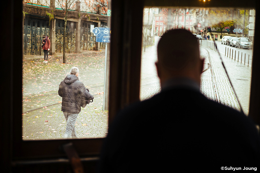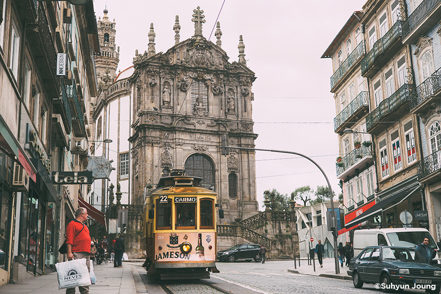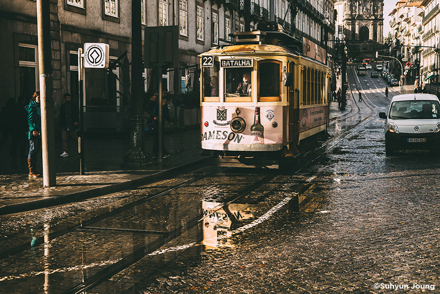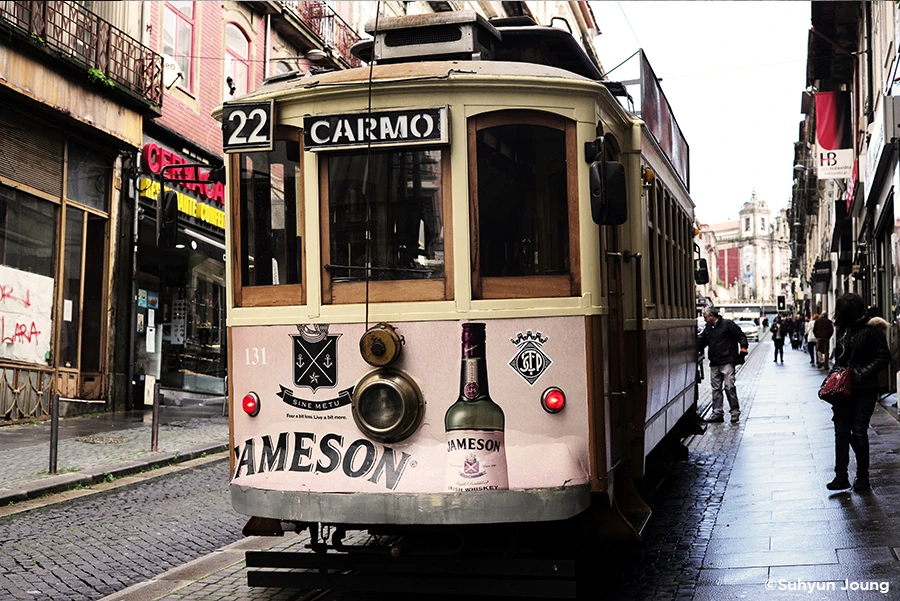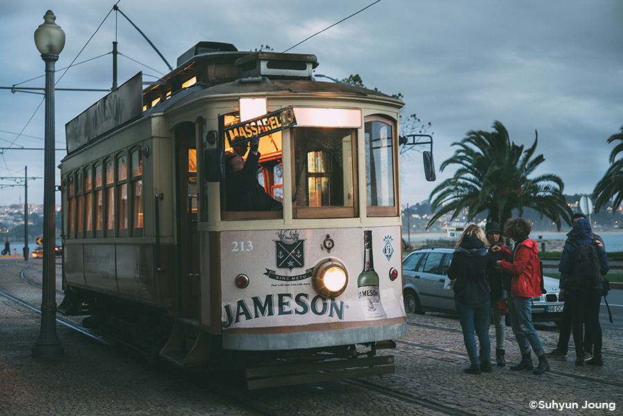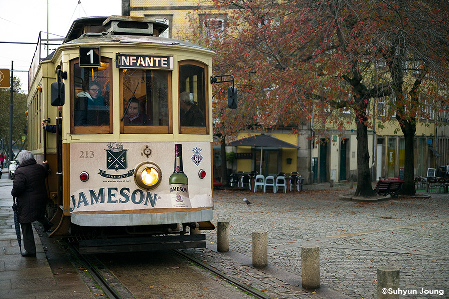 포르투에 트램이 있다는 건 진작에 알고 있었다. 하지만 눈이 가는 곳마다 구불구불 평행하는 쇳덩이 라인은 또렷한데 정작 그 위를 달려야 할 트램은 쉽사리 보이지 않았다. 강렬한 첫인상으로 남기에 적당한 때를 노리고 있었던 걸까? 백그라운드를 지키는 성당과 탑의 흥건한 시대적인 느낌에 힘입어 마치 시간을 달리는 듯 유유히, 트램은 그렇게 모습을 나타냈다.