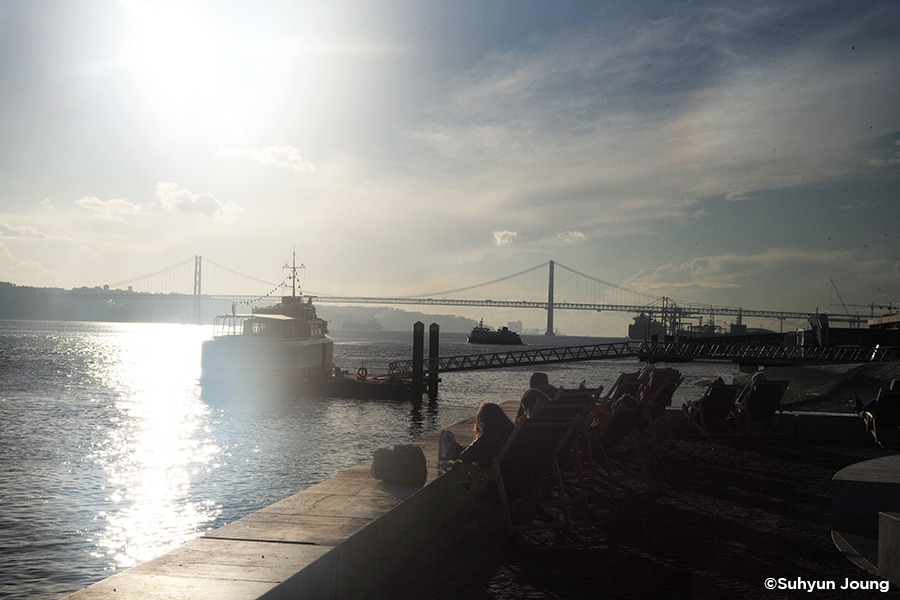 리스본의 호텔은 아주 훌륭했다. 언젠가부터는 집을 빌리는 것에 대한 매력을 못 느끼게 되어 호텔을 선호하고 있는데 역시나 그 생각이 옳음을 대변하는 완벽한 곳이었다. 세 쪽의 긴 창문으로는 햇빛이 충분히 스며들었고 얇고 보드라운 커튼이 하늘거렸다. 방 전체가 화이트와 민트로 채워져 있었으며 플라워 페브릭의 소파는 하루가 마무리될 무렵 와인 한잔과 하루의 느낌을 공유하기에 충분했다. 무엇보다 멋있는 건 침대 옆 창문 너머로 보이는 테주강. 바다인지 강인지 구분하기 힘든 끝이 안 보이는 테주강은 금방이라도 뛰쳐나가고 싶을 만큼 여행자의 마음을 자극했다.