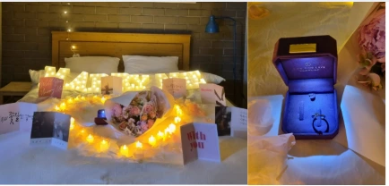 아주 예쁘고 큰 꽃다발과 반짝이는 다이아 반지를 건네면서 같이 살자고 청혼한 그날.