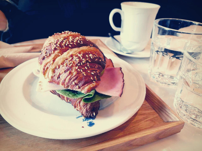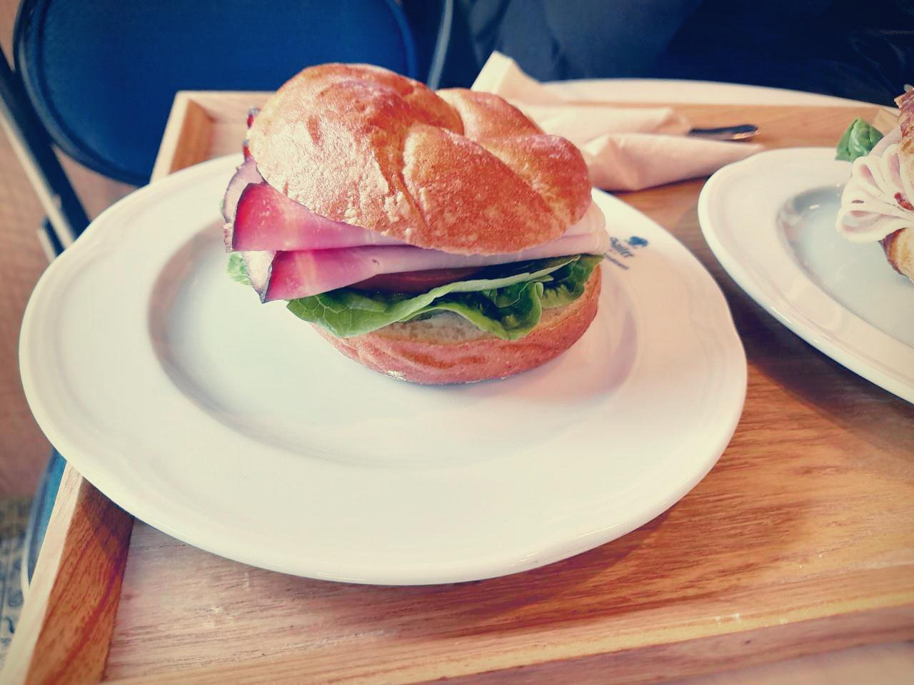 아쉬움을 뒤로한 채 진열되어 있던 샌드위치 두 개를 시키고 아내는 멜랑지 커피를, 나는 아인슈페너 커피를 주문하고 자리에 앉았다. 아내는 간단하게 햄과 토마토, 그리고 상추가 들어간 카이저젬멜 샌드위치를, 나는 아보카도와 햄이 듬뿍 들어간 라우겐 크롸상을 메뉴판에서 선택했다.