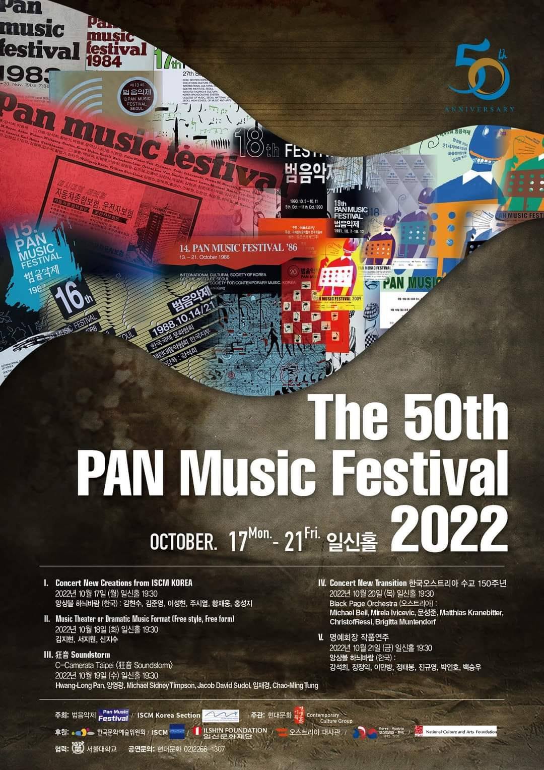 범음악제(Pan Music Festival)가 한창이었다. 1969년부터 시작된 현대음악제로, 올해로 벌써 50회째 맞이했다. 따지고 보면 1969년부터라고 하면 50회가 아닐 텐데, 사실 정확한 역사를 날아보진 못했고 그냥 그러려니 한다. 음악제의 마지막날 역대 회장님들의 무대 위 모습은 마치 한국 음악의 역사를 한 번에 보는 듯했고, 이제는 고인이 되셨거나 원로작곡가로서 활동하시는 작곡가 선생님들을 한자리에서 뵙자니 한국판 어벤저스가 따로 없었다. 이분들이 젊었을 적의 음악세계와 지금을 비교하면 나는 어떻게 비치고 있을까. 궁금했었다.