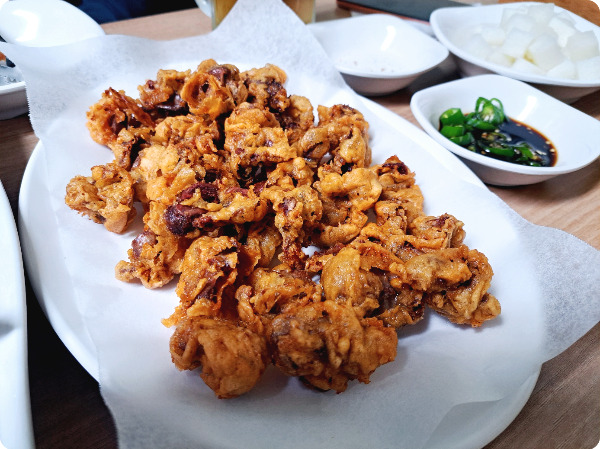 [일주일뒤 또다시 방문한 치킨집: 매운간장 소스와 닭똥집 튀김은 환상의 궁합이다]