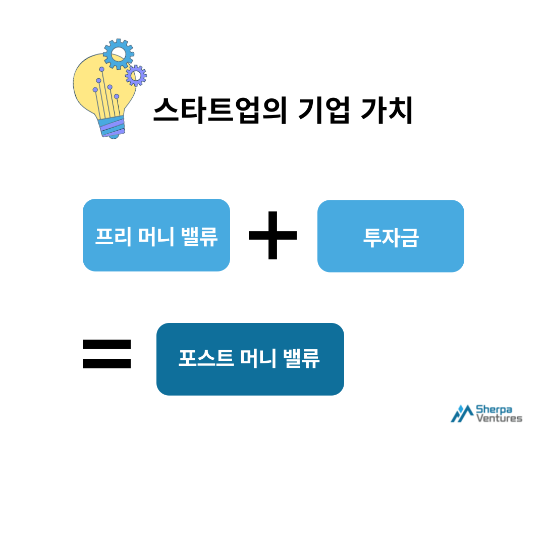즉, 프리 머니 밸류를 근거로 투자가 진행되고, 투자 이후엔 포스트 머니 밸류로 기업 가치가 변한다는 뜻이 됩니다.