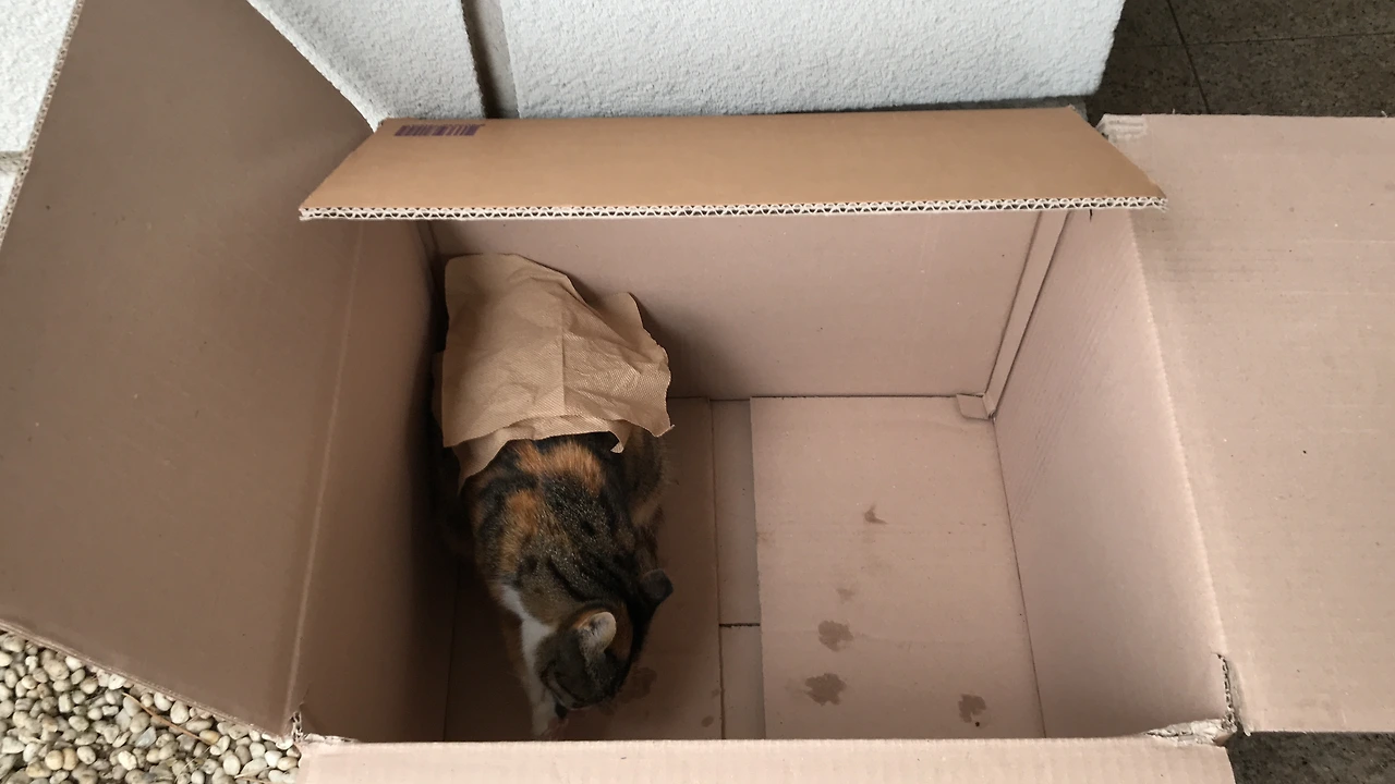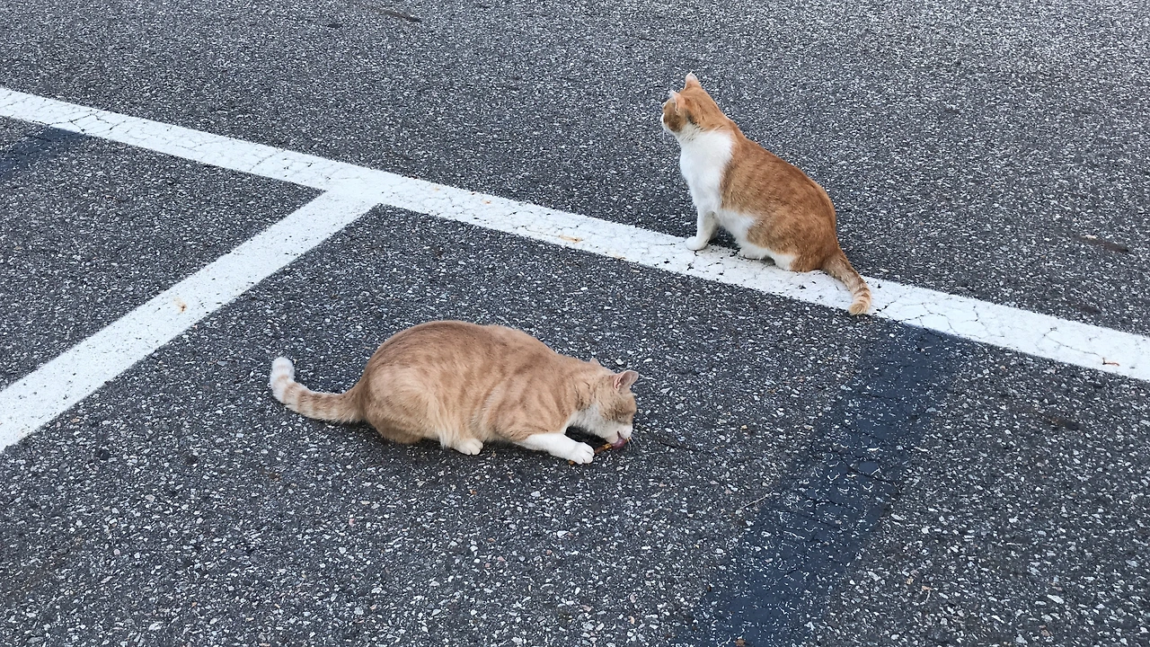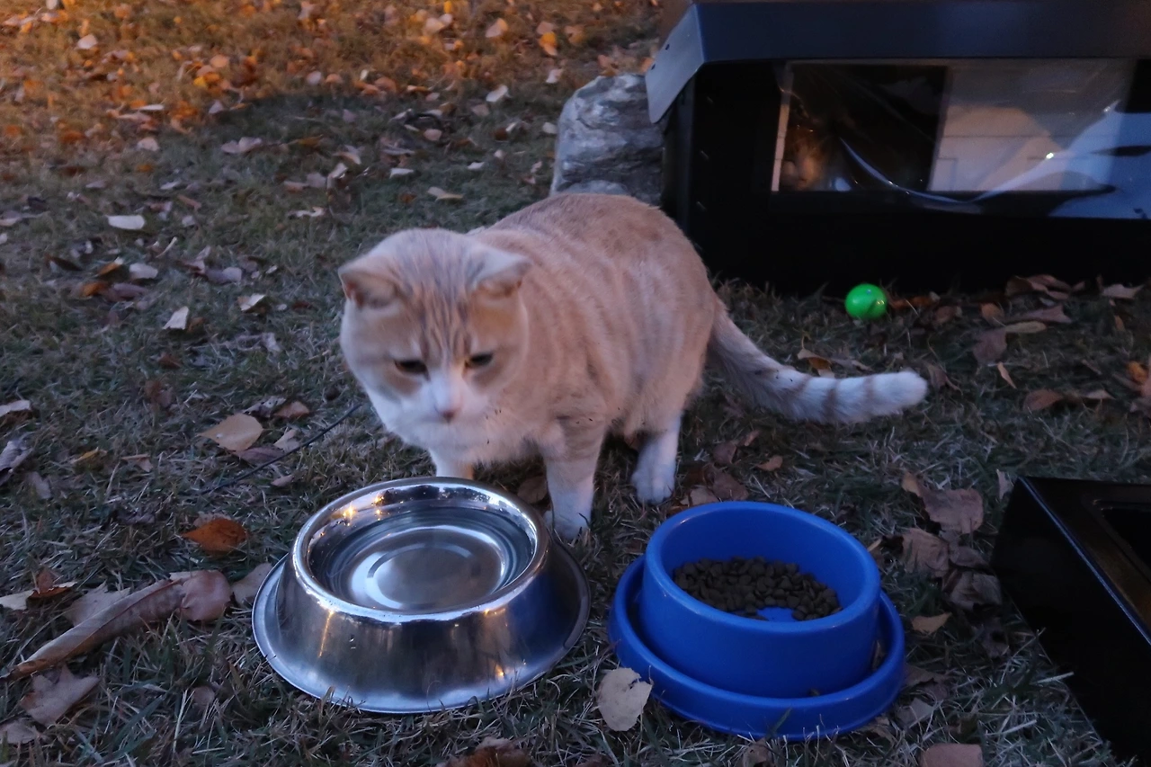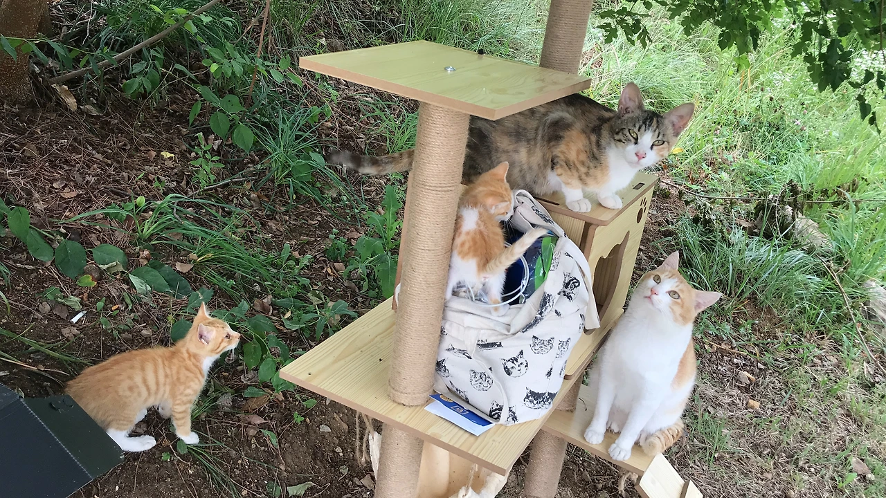 약속 시간이 되어 고양이들을 포획해가실 분이 도착하셨다. 고양이들의 상태를 멀리서 확인하고 말로만 듣던 통덫을 세팅했다. 통덫 끝 쪽에 맛있는 냄새가 나는 간식을 두고, 입구 쪽에도 맛보기로 조금 떨어뜨려두면 완성이었다. 하루를 내리 굶은 고양이들은 처음 보는 통덫에 경계심과 호기심을 동시에 느끼며 다가왔다. 그러다가 맛있는 냄새가 나자 기웃거리기 시작했다.