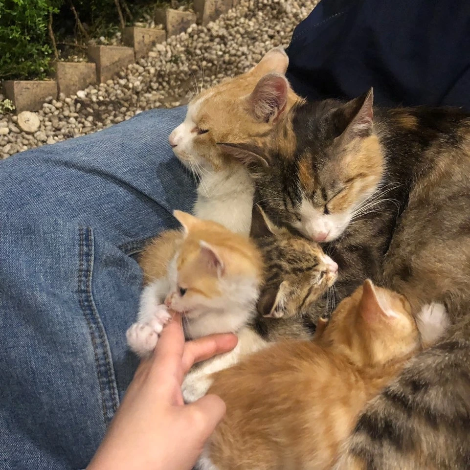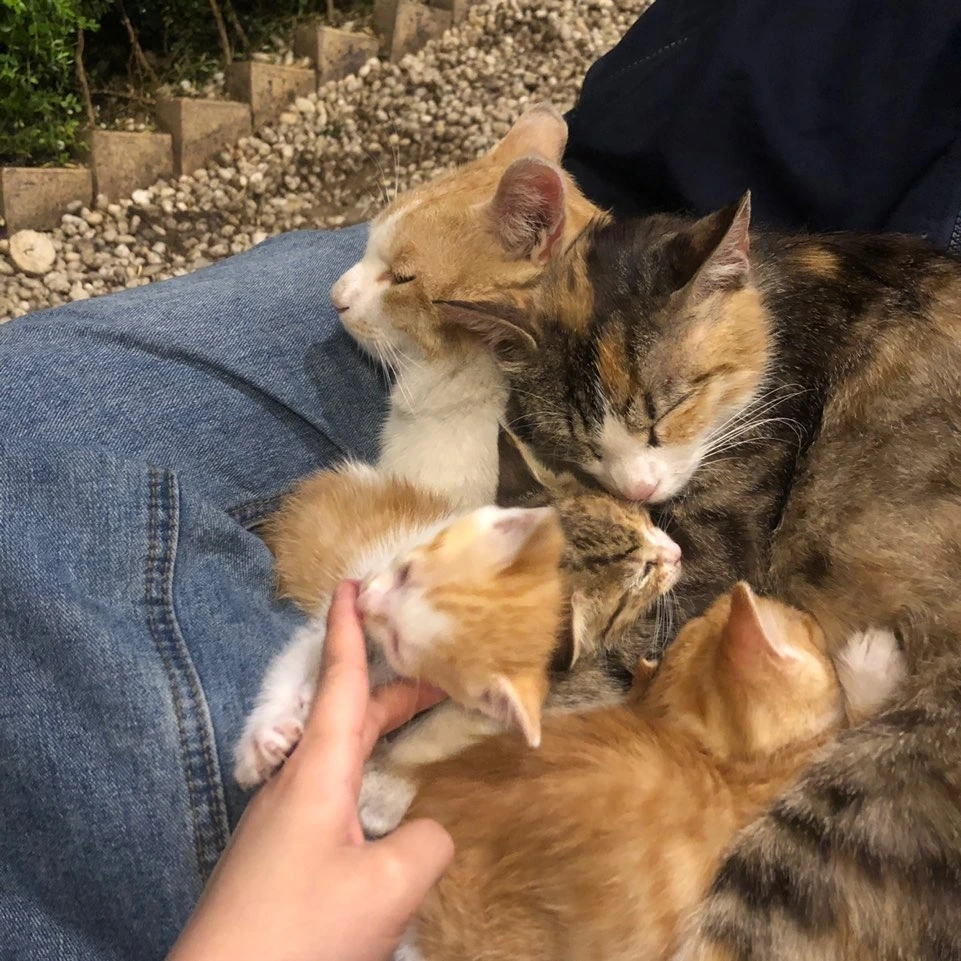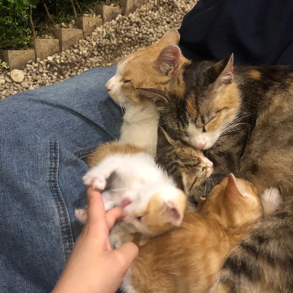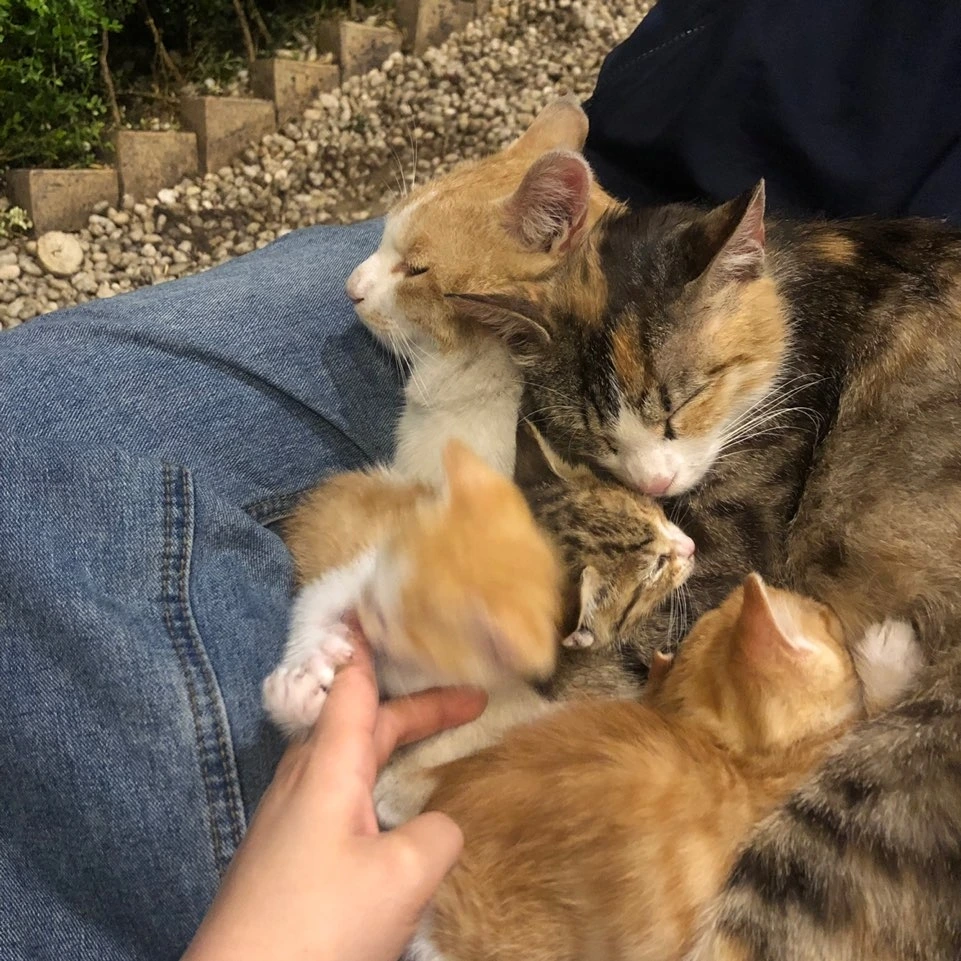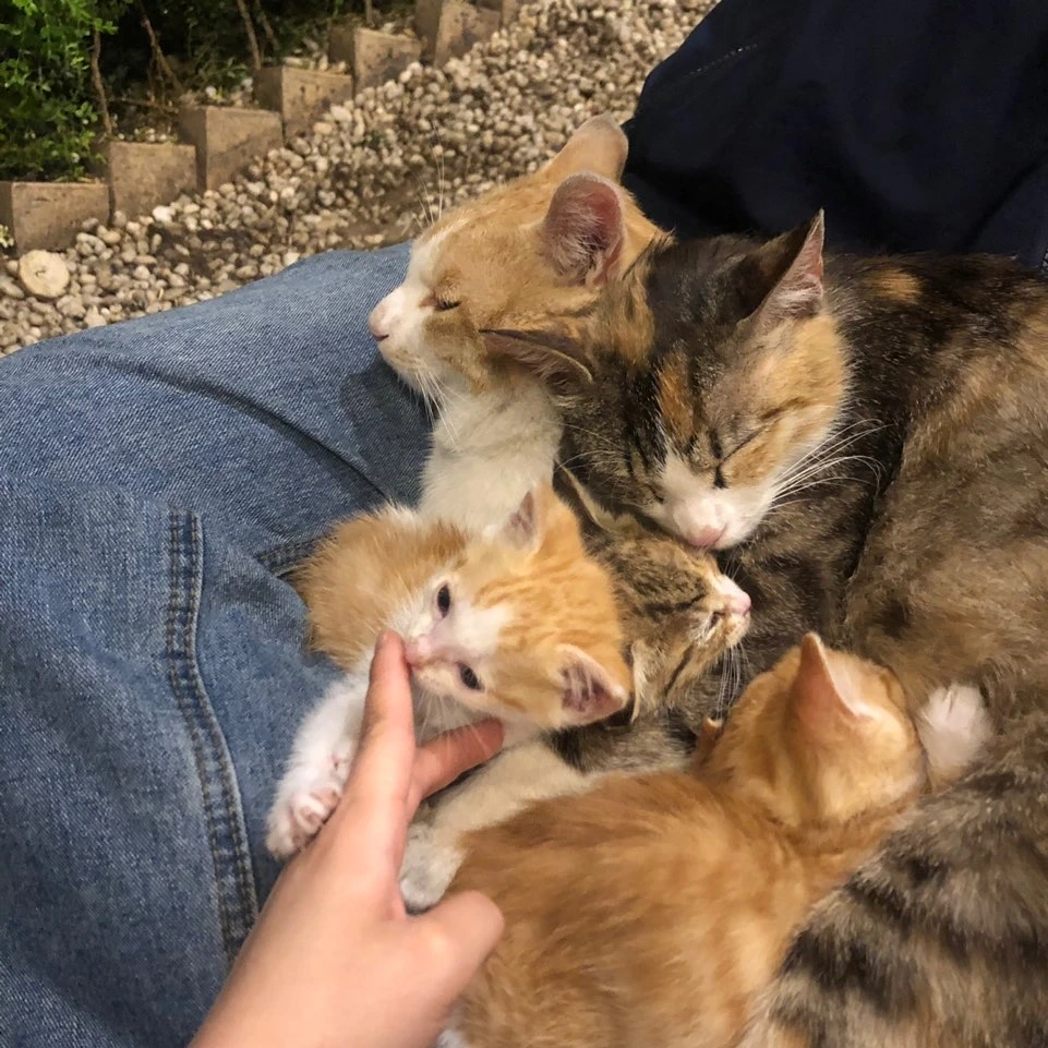 행복한 레오네 가족은 한 사람의 무릎에서 알콩달콩 낮잠을 즐기기도 했고, 아기들도 아장아장 걷는 것이 익숙해져 뛰어다니며 술래잡기를 했다. 호의적인 사람들 사이에서 사랑을 받으며 자라는 아기 고양이들을 보며 나는 중성화와 입양 계획을 세우고 있었다. 레오와 떨어져 입양을 보내는 것이 마음 아프지만 기숙사 고양이 복지와 평판, 고양이들 개개묘의 삶을 위해서라도 그게 나을 것임을 알기 때문이었다.
