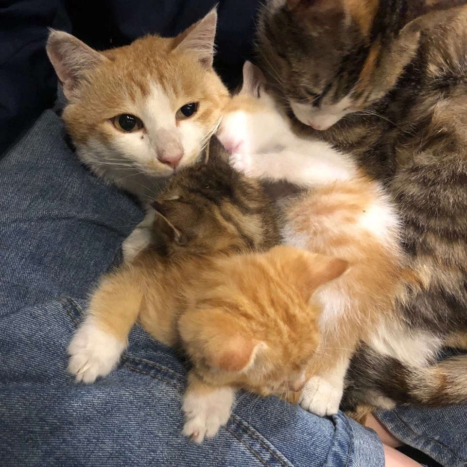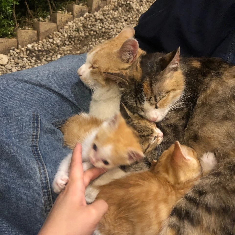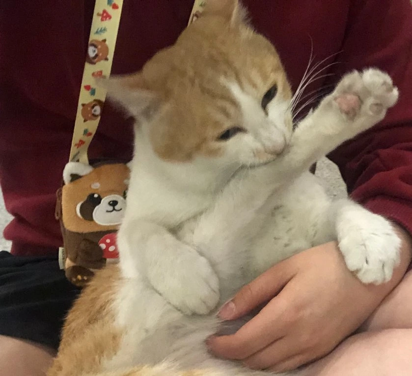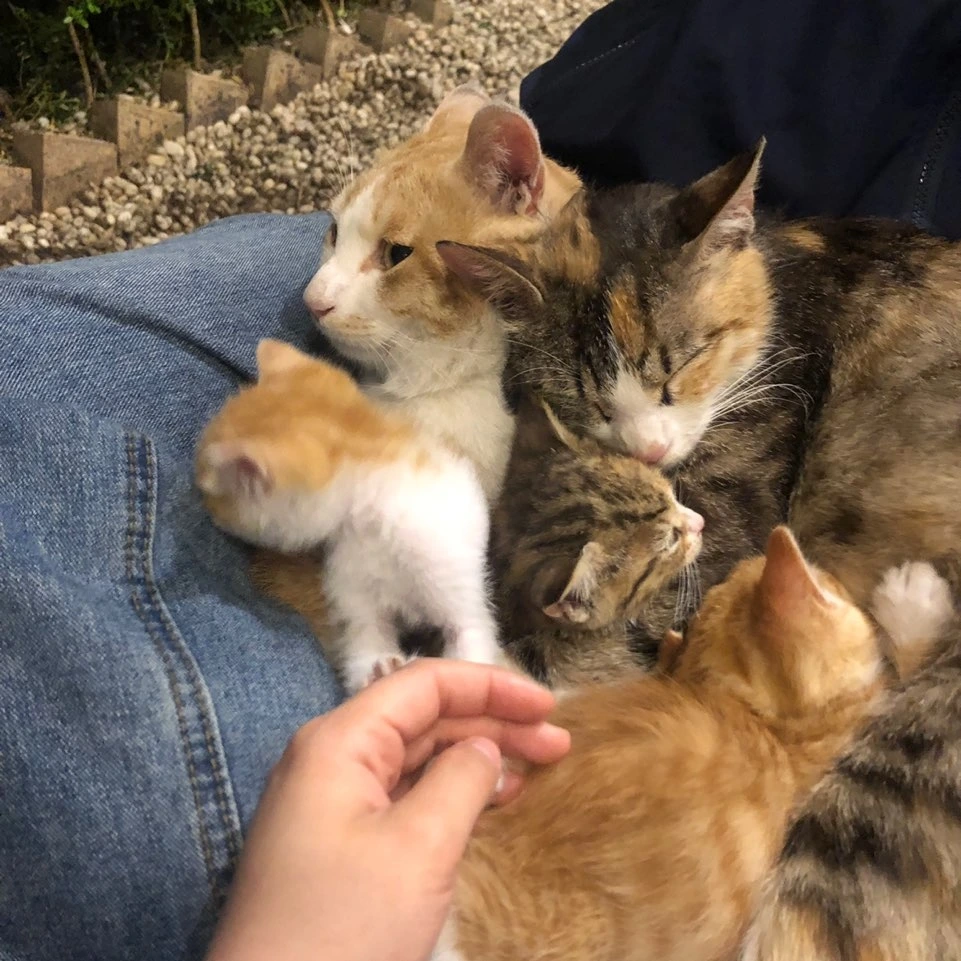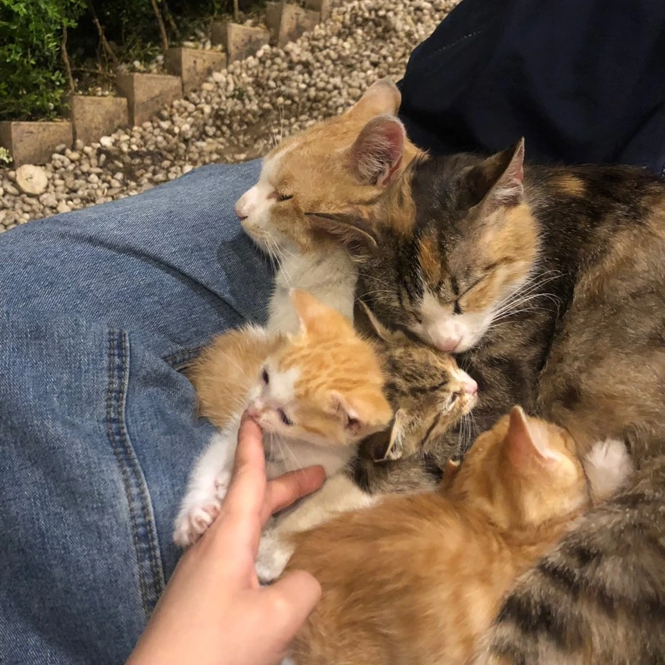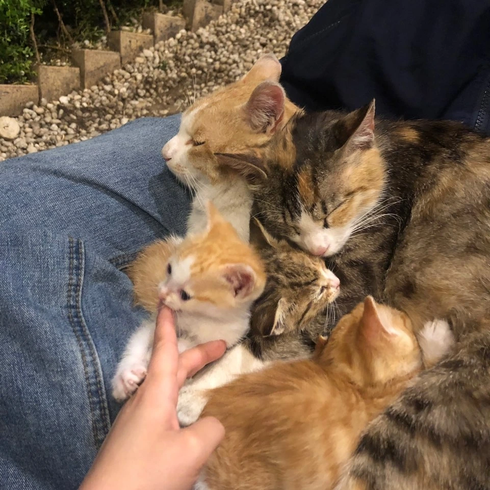 행복한 레오네 가족은 한 사람의 무릎에서 알콩달콩 낮잠을 즐기기도 했고, 아기들도 아장아장 걷는 것이 익숙해져 뛰어다니며 술래잡기를 했다. 호의적인 사람들 사이에서 사랑을 받으며 자라는 아기 고양이들을 보며 나는 중성화와 입양 계획을 세우고 있었다. 레오와 떨어져 입양을 보내는 것이 마음 아프지만 기숙사 고양이 복지와 평판, 고양이들 개개묘의 삶을 위해서라도 그게 나을 것임을 알기 때문이었다.