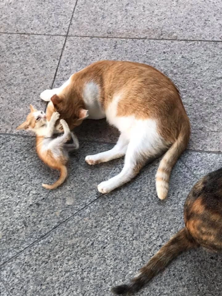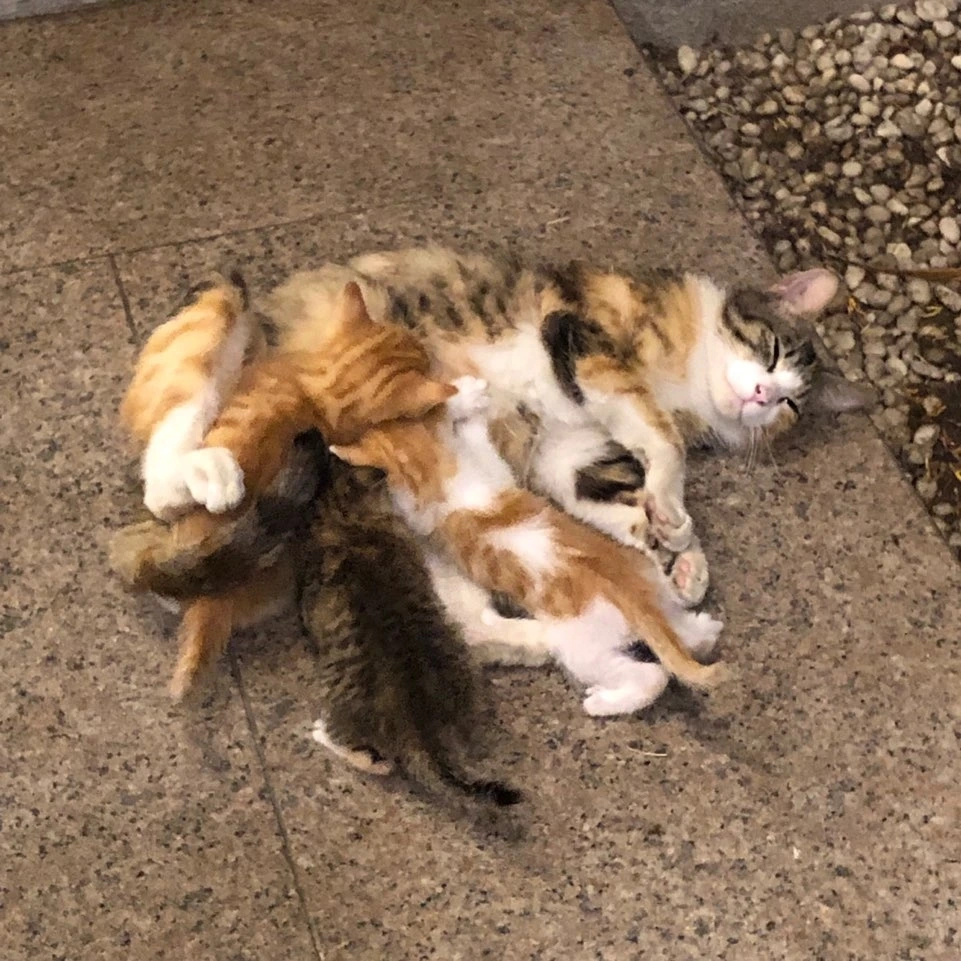 다행히 기숙사로 돌아올 때쯤에는 한바탕 퍼붓던 비가 그쳐있었다. 상쾌하고 쌀쌀한 공기를 다시 맡게 된 아가 고양이들은 부모가 없어져서 당황한 눈치였다. 레오가 TNR을 위해 잡혀가기 전 배불리 젖을 먹어서인지 아기 고양이용 습식에 약을 섞어주었지만 입도 대지 않았다. 비싼 약을 버렸다는 것보다는 밥을 먹은 지 시간이 꽤 흘렀는데 먹어주지 않아서 걱정되는 마음이 컸다.