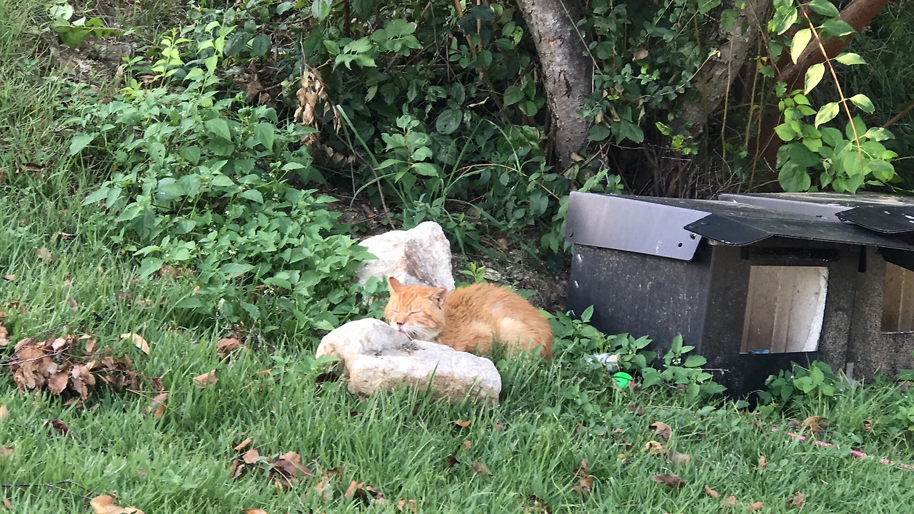 갇힌 고양이들을 안정시키기 위해 담요로 감싸주었다. 모습을 잘 드러내지 않는 가필드를 잡기 위한 새로운 통덫도 가필드 출몰지역에 두 개 설치해두었다.