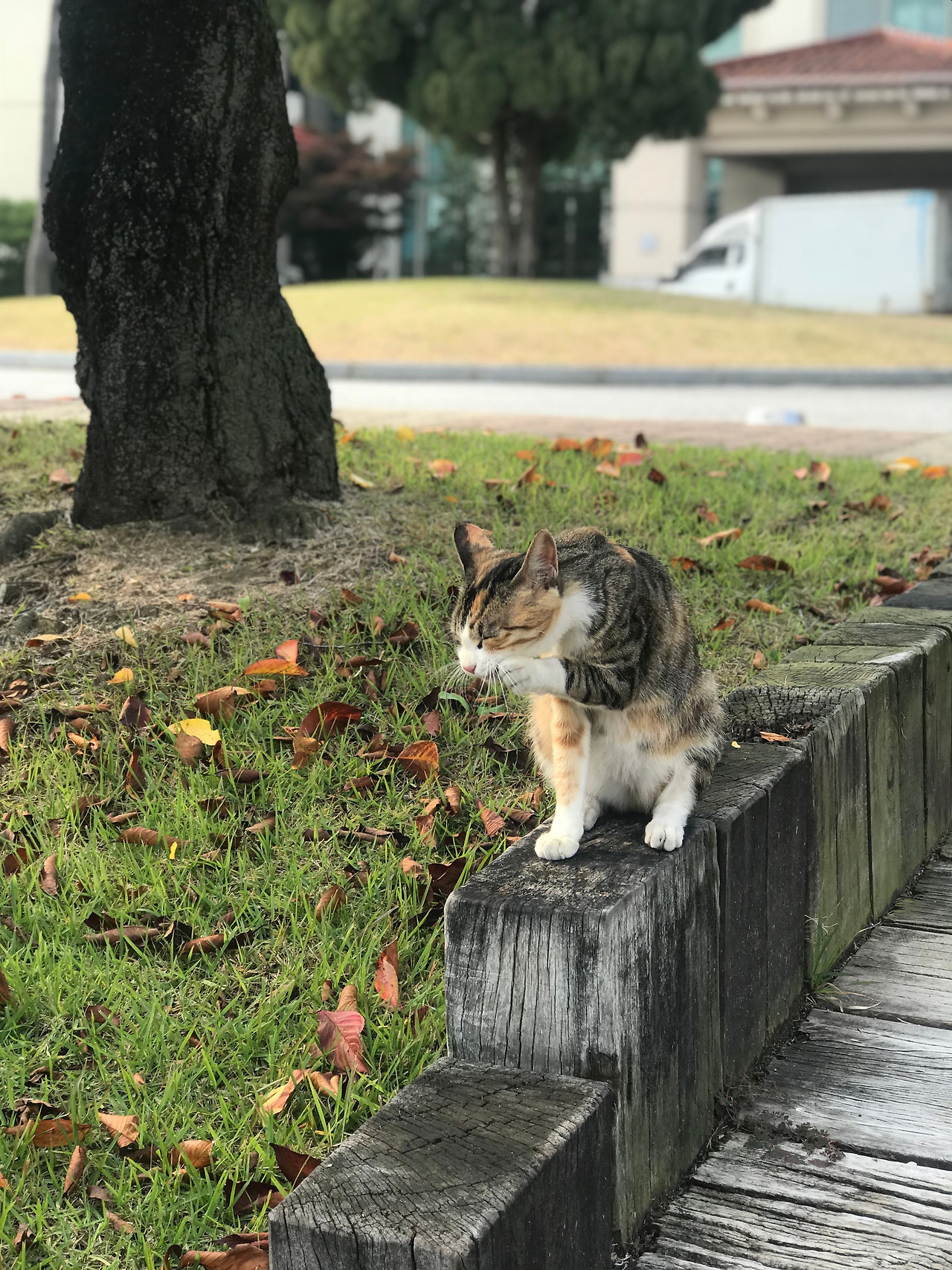 흙먼지와 마른 낙엽 위에 굴려가며 닭가슴살을 먹은 오레오가 더 달라고 다가왔다. 그런 식으로 두 개쯤 더 먹고 나서야 레오는 만족한 얼굴로 그루밍을 했다. 마지막 식사는 내가 조금 잘라주는 데에 성공하기도 했다.