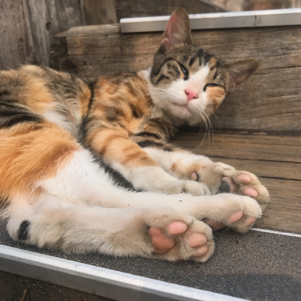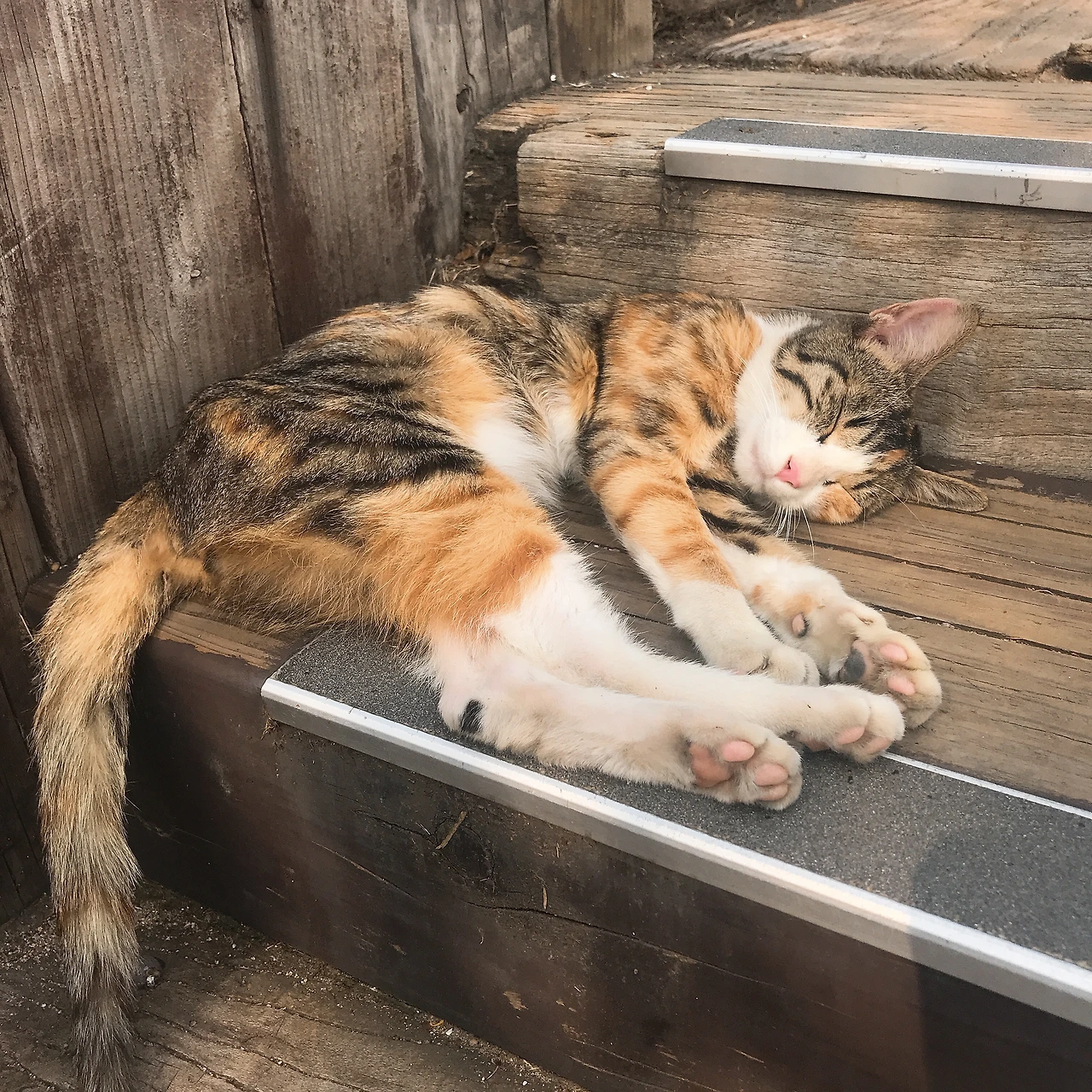 또 어느 날은 볕 좋은 휴무였다. 아이들에게 오전 식사를 대접하기 위해 나왔는데 다른 고양이들은 놀러 나갔는지 숨어서 자는지 보이지 않고, 레오만 떡하니 보이는 곳에 자리 잡고 있었다. 당연히 밥을 줄거라 기대하는 눈빛이었다. 나는 닭가슴살을 까주었다. 오레오는 내가 포장을 벗기고 작게 찢어주는 것을 기다리지 못하고 닭가슴살을 통째로 물고 갔다.