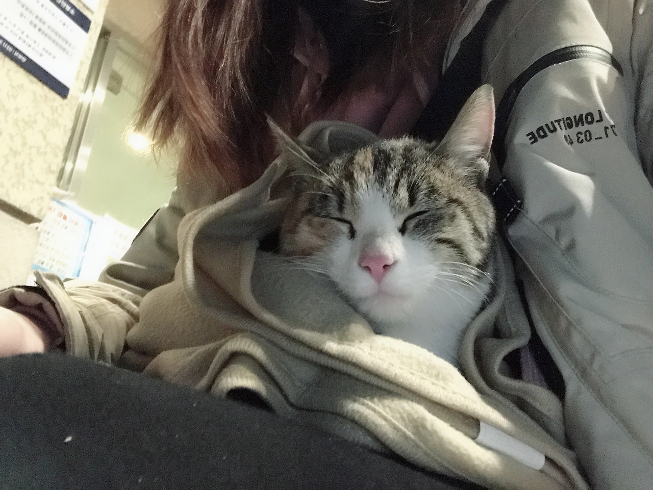 대신 시간이 나는 대로 내려가 고양이들을 껴안아주었다. 사람을 꺼려하던 레오도 추위에는 이기지 못하고 무릎 냥이가 되었다. 나는 담요를 들고 다니며 고양이들을 담요로 한번, 내 패딩으로 한번 더 감싸주었다. 그렇게 안고 나면 그때부터는 시간싸움이다. 고양이들이 최대한 오래, 그리고 편안히 쉴 수 있도록 쥐가 나도 자세를 바꾸는 것을 자제해가며 인간 이글루처럼 무조건 가만히 버텼다.