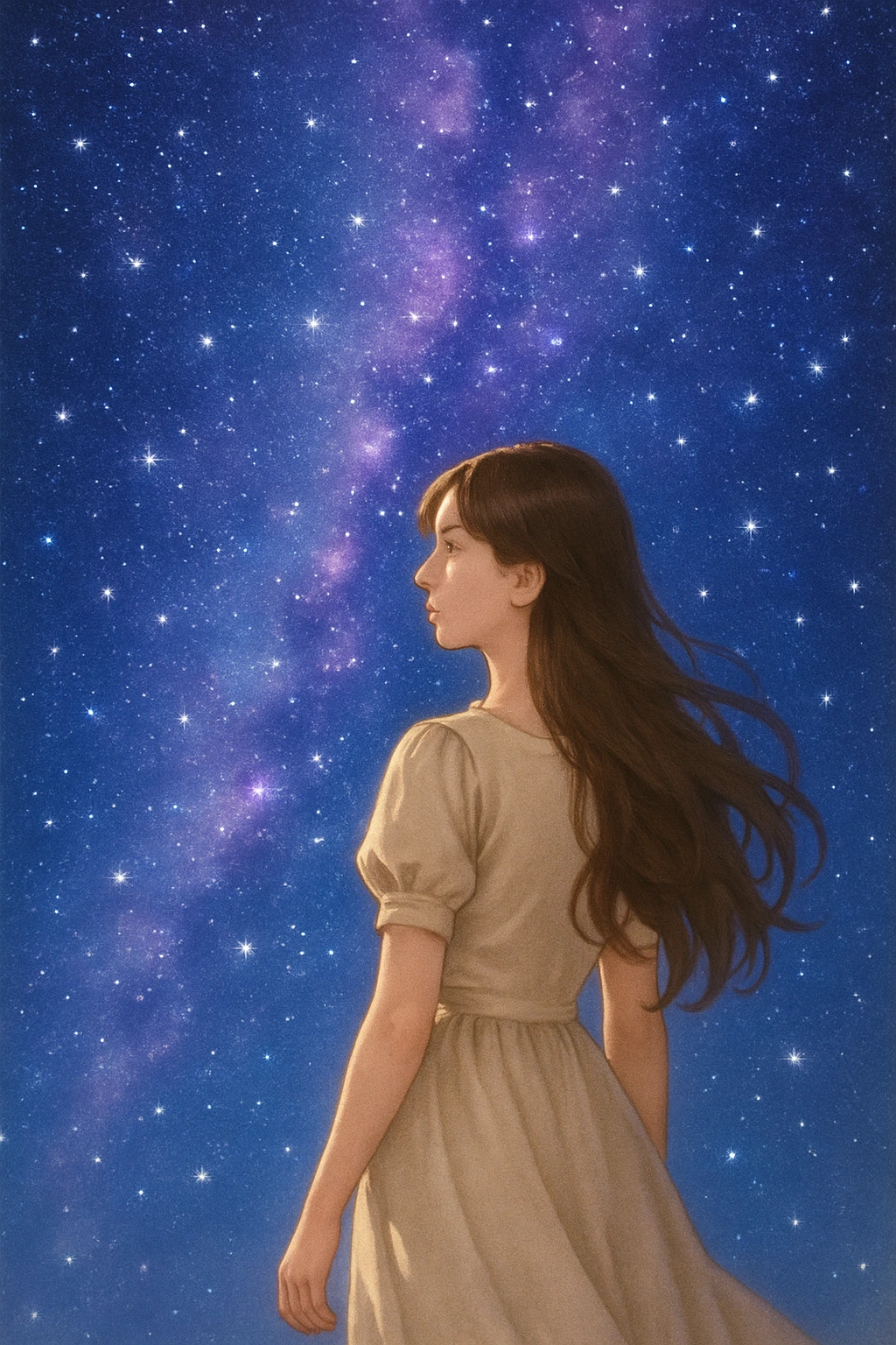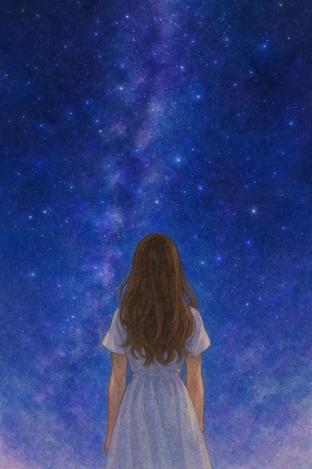 밤하늘을 바라보는 소녀가 있어