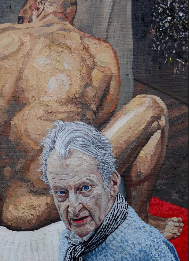 우연한 붓질 한 번에 그림의 모든 걸 깨달은 듯 벅차다, 다음날 벽에 부딪혀 과거의 자신을 뒤적이는 순간들이 있었다 한다(작가노트 인용). 이런 고립된 시점에 작가는 프란시스 베이컨, 호크니, 헤르난 바스 같은 미술계 거장들의 얼굴을 그렸다 한다. 그들의 기법, 태도로 말이다. 그렇게 작가는 High and Dry 상태를 벗어날 수 있었다 한다. 자연스럽게 다음 작품에도 도움이 되는 훈련이었고, 돌이켜 보면 그건 신념을 만들어가는 과정이란 생각이 들었다 한다. 그렇게 2012년부터 그려온 거장들의 얼굴은 '화가의 성전'이라는 시리즈가 되었다.