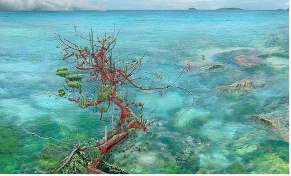 이번 개인전의 대표작품은 '누군가의 열매'라는 149x249cm크기의 대형작품이다. 바람의 결이 빚은 물결까지 무서울 정도로 정교하게 표현을 했다. 수개월이 걸렸을 것으로 보이는 작품이었다.