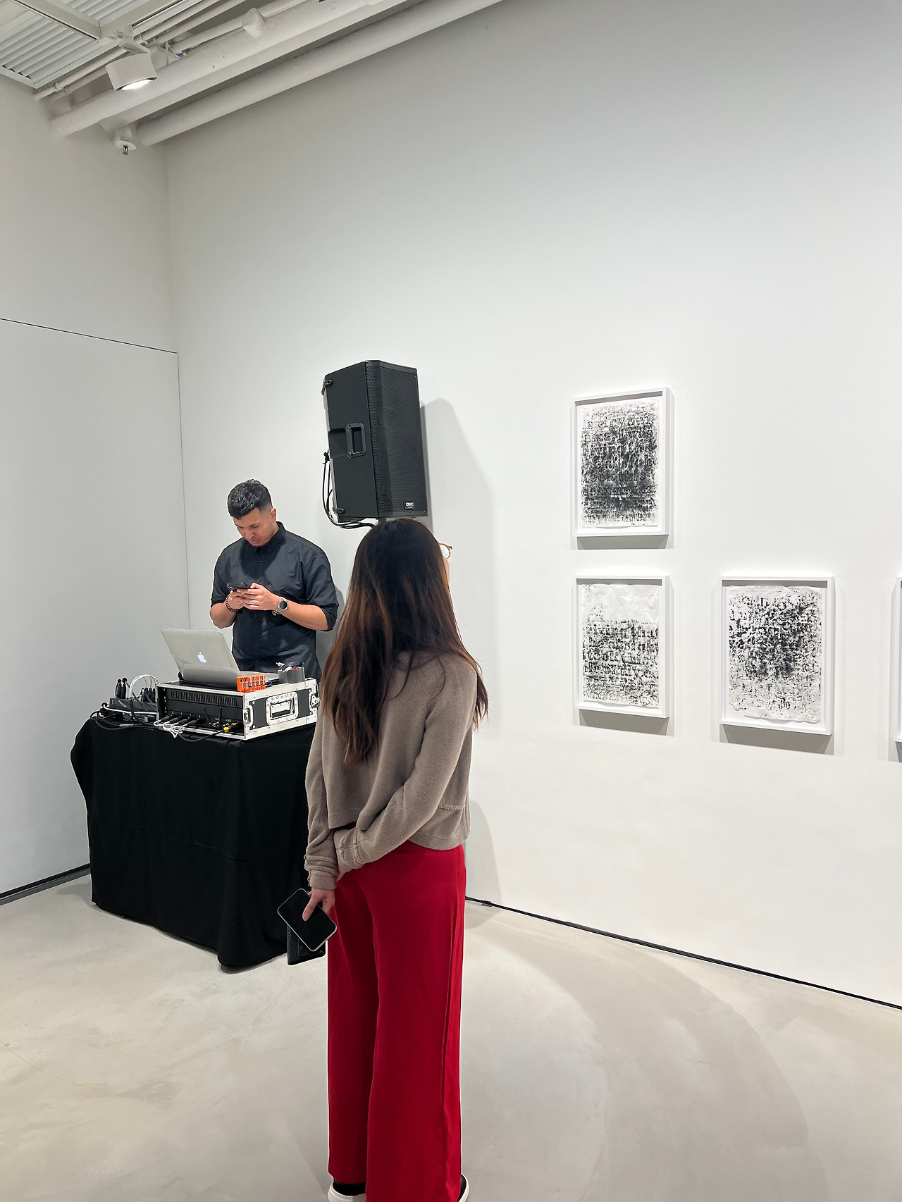 특히 하우저앤워스(Hauser&wirth)에서는 그렌 리곤(Glenn Ligon)의 새로운 작품이 전시되고 있었는데, 그림과 DJ, 그리고 한껏 드레스업 한 다양한 사람들을 볼 수 있는 신선한 저녁이었다. 굉장히 모던한 공간과 사람들 속에서 1953년 제임스 볼드윈의 에세이 '마을의 이방인(Stranger in the Village)'의 에세이에서 발췌한 텍스트를 추상화한 작품을 알싸한 샴페인의 취기와 함께 감상할 수 있었다.