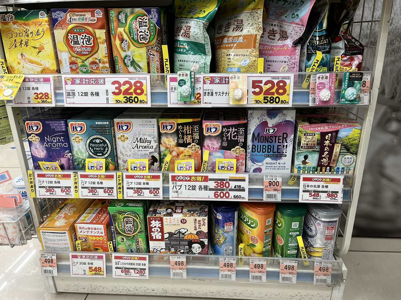 일본에 가면 꼭 사 오는 것. 그것은 입욕제이다. 욕조에 물을 받아 입욕제를 하나 풍덩 집어넣으면 금세 우리 집 목욕탕이 온천으로 바뀐다. 최애 힐링하는 방법 중 하나인데, 한국에서는 구하기도 쉽지 않고 있어도 비싸서 아쉽다. 목욕을 즐기는 일본인만큼, 일본 마트에 가면 다양한 입욕제를 쉽게 찾을 수 있다. 알록달록한 입욕제 중에서 기분에 따라 색깔을 골라 욕조에 퐁당 던지면 바로 낭만이 찾아온다.