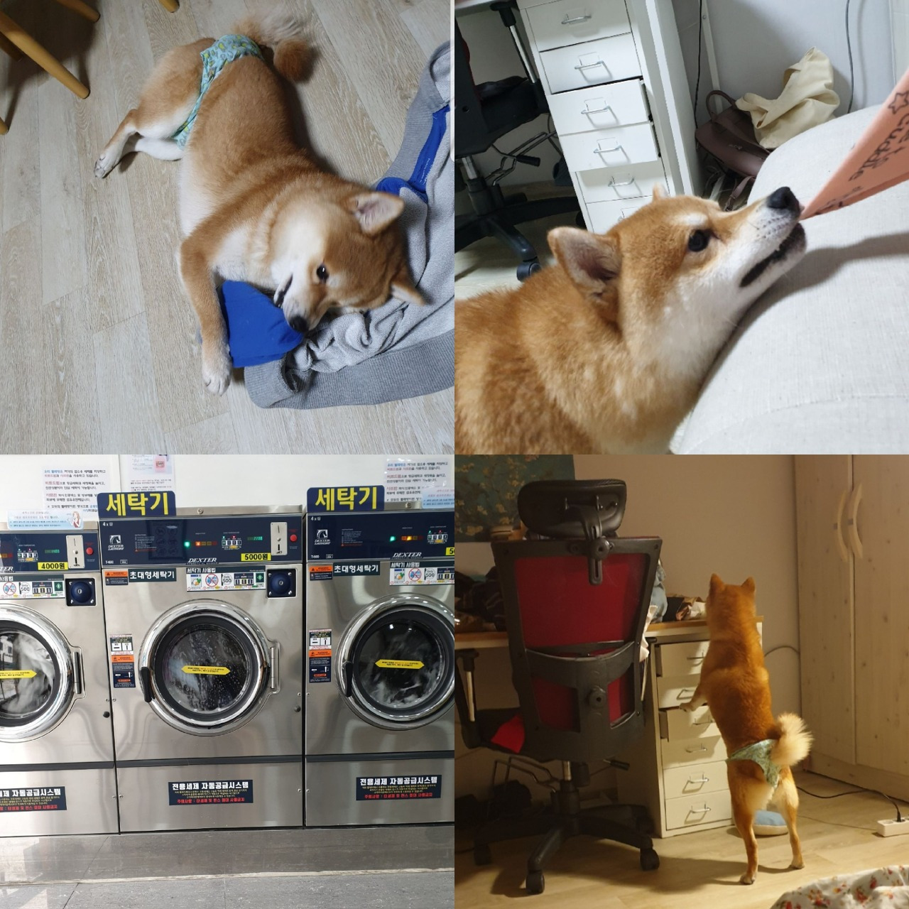 식은땀이 흐르기 시작했다. 쉬한 곳을 가리키며, 이불을 팡팡 두드리면서 아무리 하쿠를 혼내보아도 이튿날 이면 또 쉬를 해놓고, 또 그다음 날이면 어김없이 쉬를 해놓았다. 따라서 심할 때는 이틀에 하루 걸러 이불을 싸매고 코인 세탁소에 가곤 했다. 말이 '코인' 세탁소이지 빨래에 건조까지 하려면 한 회당 만원은 들었다. 하지만 그렇게 하지 않으면 당장 그날 덮고 잘 이불이 없었다. 이불 짐을 한가득 들고 코인 세탁소에 갈 때마다 내 시간이며, 돈이며 돌돌 돌아가는 세탁기 안에서 함께 녹아내리는 것을 지켜보는 것만 같아 마음이 쓰렸다. 휴.. 실금 문제를 어떻게 해결했는데! 같이 살기 시작하자마자 이런 문제에 봉착하게 될 줄은 상상도 못 했다.