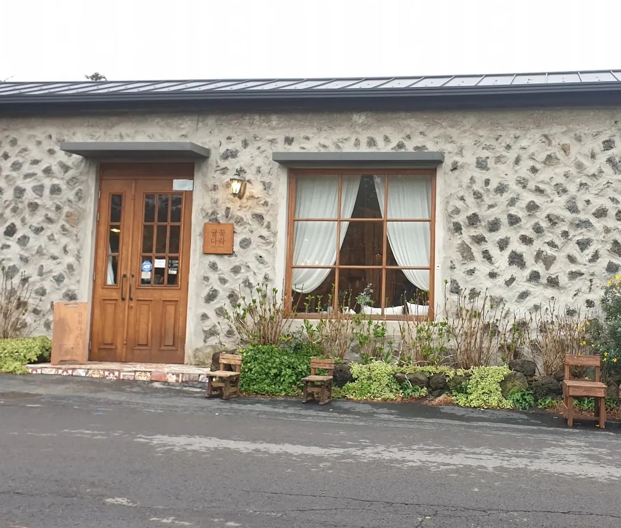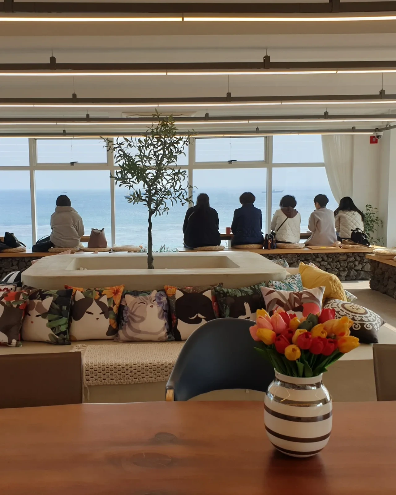 비오는 해변을 통창으로 볼 수 있는 '랜딩커피'