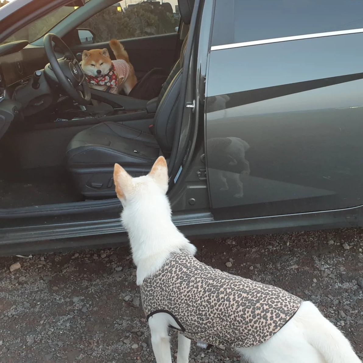 쿠는 산책을 나와서도 어딘가 못마땅하다. 몇 걸음 가려고 하지 않고, 소변을 보려고도 하지 않는다. 답답하다는 듯 한숨을 푹 쉬고 누나를 쳐다보기를 반복한다. 아니 쿠 뭘 어쩌라고?! 결국, 쿠는 발걸음을 돌려서 주차공간으로 간다. 쿠에게 "빵빵"이라고 불리는 차 앞에서 나를 돌려보았다. 그제야 어젯밤 하쿠랑 한 약속이 생각났다. "쿠야. 내일은 빵빵 타고 멍멍이 친구 보러 카페 가자~!" 이 녀석, 원하는 종류의 산책을 가기 위해서 소변도 참고 기다리고 있었던 것이다. 소름 끼치게 놀랍다. 가끔씩 저 작은 두뇌는 상당히 목표지향적이고 때에 따라 매우 효율적으로 잘 굴러가는 편이다.