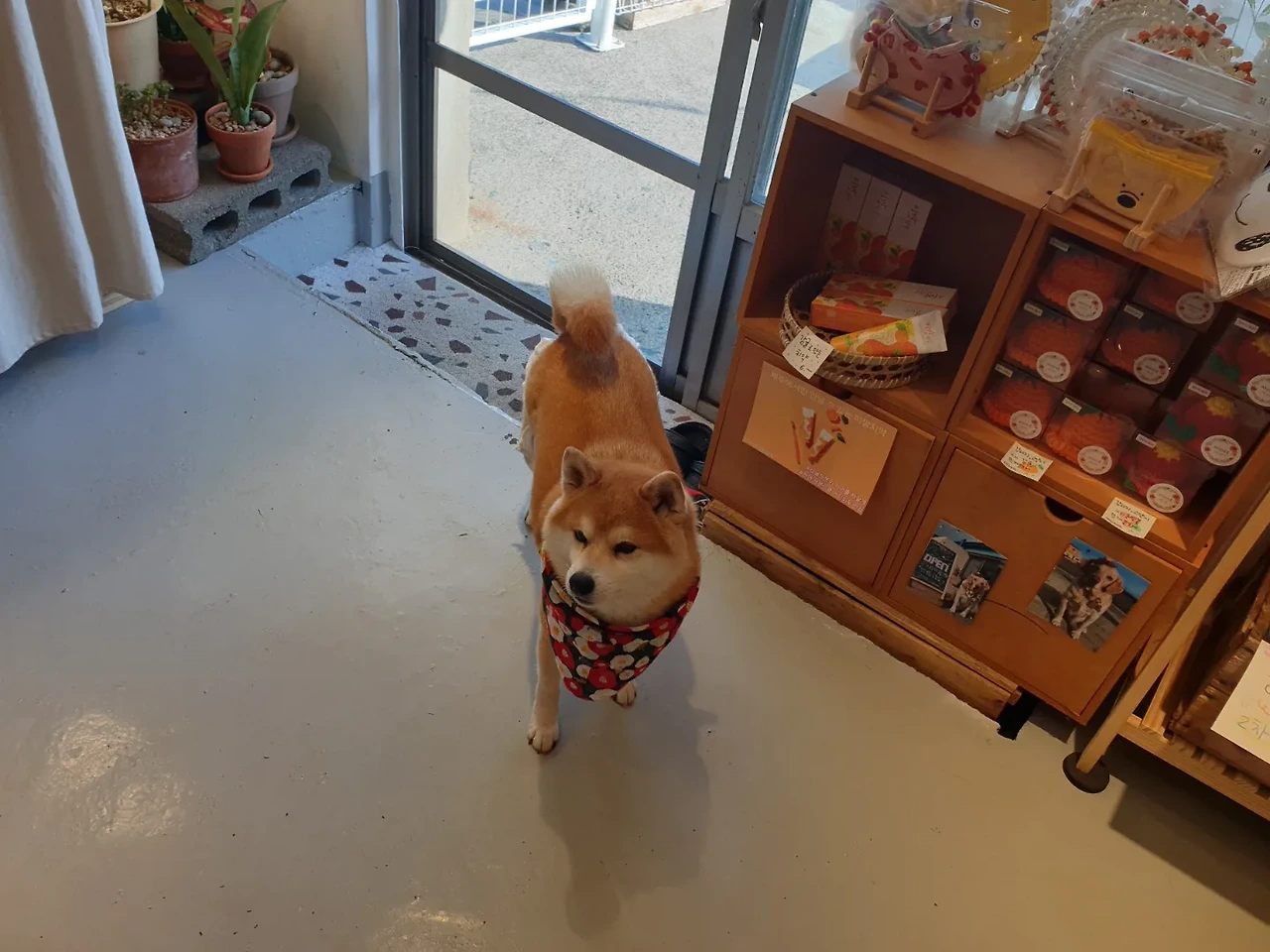 제주에 온 지 얼마 되지 않았을 때는 반려동물 동반 카페가 너무나도 신기했다. 카페인데 반려동물을 데려갈 수 있다고? 여기가 유럽인가? 카페 사장님이나 손님들이 싫어하지 않을까? 하지만 우려와는 달리 귀여운 쿠가 개성 있는 공간에서 얌전히 앉아 있는 풍경은 너무나도 많은 사람들에게 사랑을 받았다. 쿠는 자연스럽게 그 공간에 스며들었고, 지금 이 글을 정리하는 내 옆에서도 어색하지가 않다. 사실, 어떻게 생각해보면 반려동물이 이렇게나 많은 대한민국에서 오히려 반려동물 동반이 불가능한 카페가 더 많다는 것이 아이러니한 부분이기도 하다. 이를 제주에 와서 느꼈는데, 가게 속의 쿠는 어떤 공간이든 보통 잘 어울리는 편이다. 쿠는 조용한 편이라서 가만히 앉아있기를 잘하기도 하고, 시바견이지만 카페에 가는 경우 옷을 입고 가서 털도 적게 날린다. 이제는 팁이 더 늘어서 카페를 갈 경우 쿠의 담요를 가져가기도 하고, 쿠가 못 먹어서 너무 애간장이 타는 것 같으면 작은 간식(저 알레르기 사료)을 챙기기도 한다. 그리고 나 혼자 예쁜 공간에서 일을 하는 동안 집에서 애타게 기다릴 쿠에게 미안한 마음이나 걱정을 하지 않아도 되는 채로 나의 일에 집중할 수 있다. 가끔 고개를 옆으로 돌리면 귀여운 쿠는 편안하게 잠들어 있다. 유토피아에 가깝다. 아직도, 개를 가게에 들인다니! 비상식적이라고 생각하는 사람들이 있을지도 모른다. 하지만 제주도의 여러 가게에서 시험해본 결과 에티켓을 잘 지킨다면, 반려동물 동반은 어려운 일이 아니다.