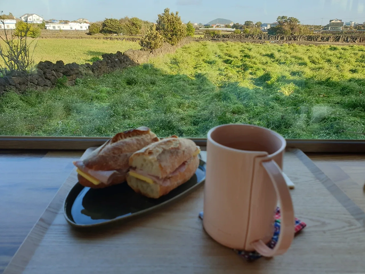 제주에 지내면서 반려동물 동반 카페나 책방, 상점을 가는 팁이 늘어난다. 대부분 추천받은 곳들은 더할 나위 없이 훌륭하다. 제주의 공간은 외면과 내면이 매우 훌륭하다. 창밖으로 보이는 외부의 자연환경 (바다 풍경, 돌담 풍경, 한라산과 오름 등등)과 사장님의 개성으로 꾸민 내부의 환경은 매우 완벽하게 어우러진다. 즉, 외부는 창을 통해 내부와 연결되고, 바다, 돌담, 꽃 등 제주스러운 무언가는 내부에서 일어나는 일의 풍미를 돋운다. 이러한 곳들이 충분히 넘쳐난다는 것은 제주의 주요한 매력포인트 중 하나이다. 자연 풍경과 독립적인 아름다운 공간들은 충분한 검색을 통해 선택하여 갈 수 있다. 나의 경우는 반려 동반이 가능한가, 쿠가 편하게 앉을 만한 자리가 있는가? 뷰가 예쁜가. 공간의 개성이 있는가. 맛있는 메뉴가 있는가를 주로 테마로 검색을 하고, 모든 판단은 주관적이다. 따라서 내가 이 글에 첨부할 카페들 또한 나의 주관에서는 100점에 가깝지만, 사람에 따라 판단은 다를 일이고, 각자의 취향에 따라 선택하면 된다. (아! 혹시나 싶어 적는 것은, 모든 것은 내 돈 내 산! 이문구가 현대사회에서는 중요한 것 같아 첨부한다.) 또한 반려 동반이 아니더라도 예쁘고 편안한 휴식공간은 많다. 하지만 대학시절 한 교수님의 말씀처럼 "그렇다 한들 강아지들을 기르는 행복을 포기할 수 없으므로..." 나는 제주의 애견 동반 문화를 사랑한다. 또한 하쿠도 이곳에서 아직은 미숙하지만 강아지 친구들과 사귀는 법을 배워나가고 있다. 장병증에 대해 평생 케어를 해주어야 하고 가족을 사랑하여 이를 필요로 하는 쿠는 여전히 우리 가족이 최우선이지만, 이곳에서 친구들을 만나면서 더욱 사회성이 길러지고 재미를 느끼는 것 같다.