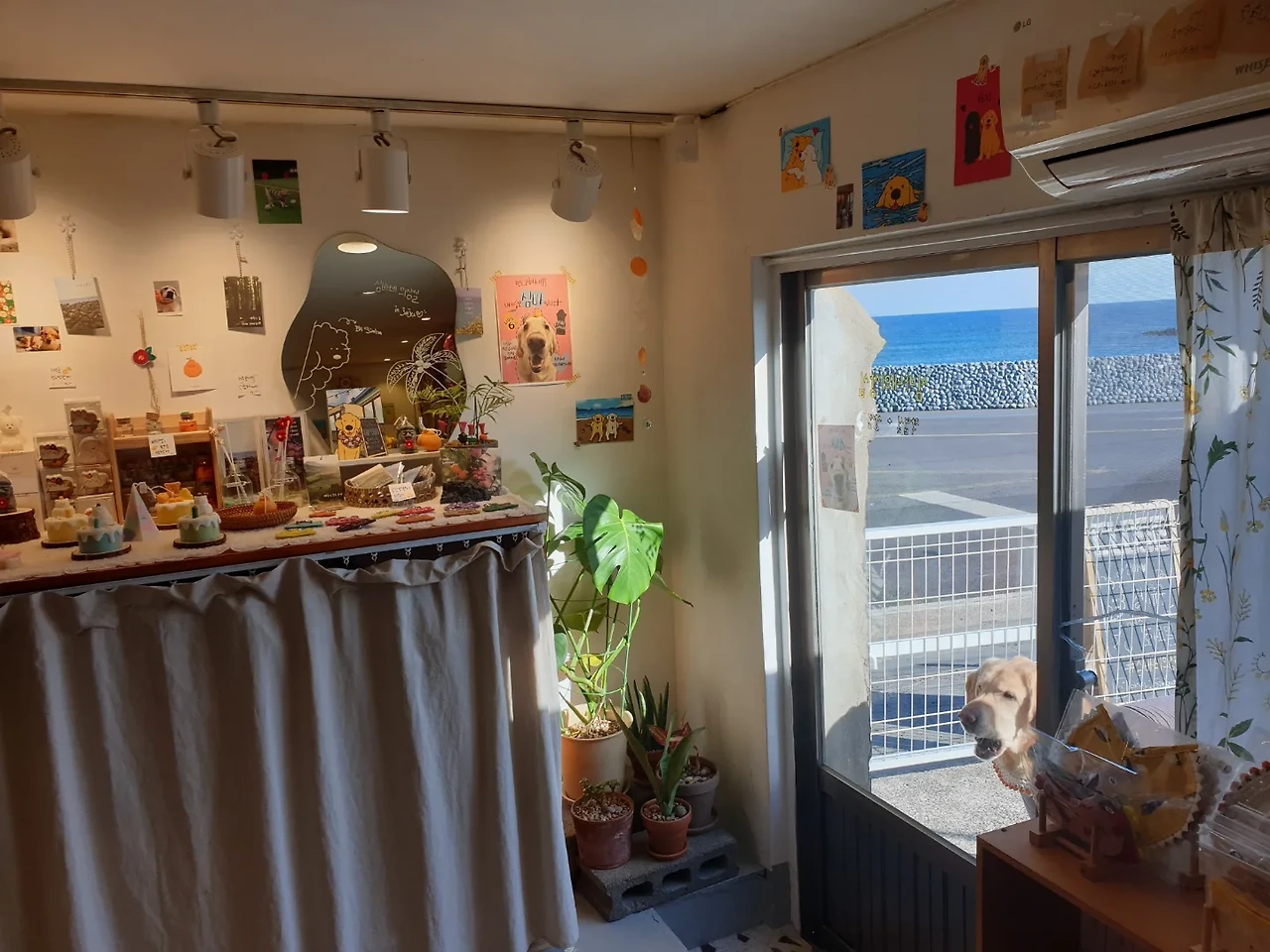 강아지 용품점 겸 소품샵인 심바네 의상실. 덩치큰 심바가 귀엽고 가게 앞에 펼쳐진 바다가 너무 아름답다.