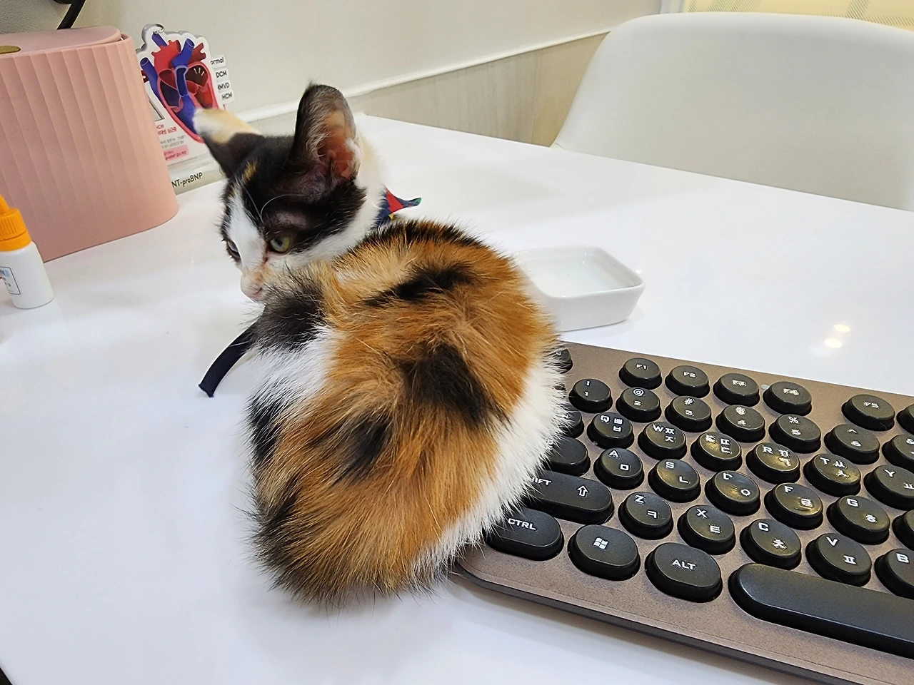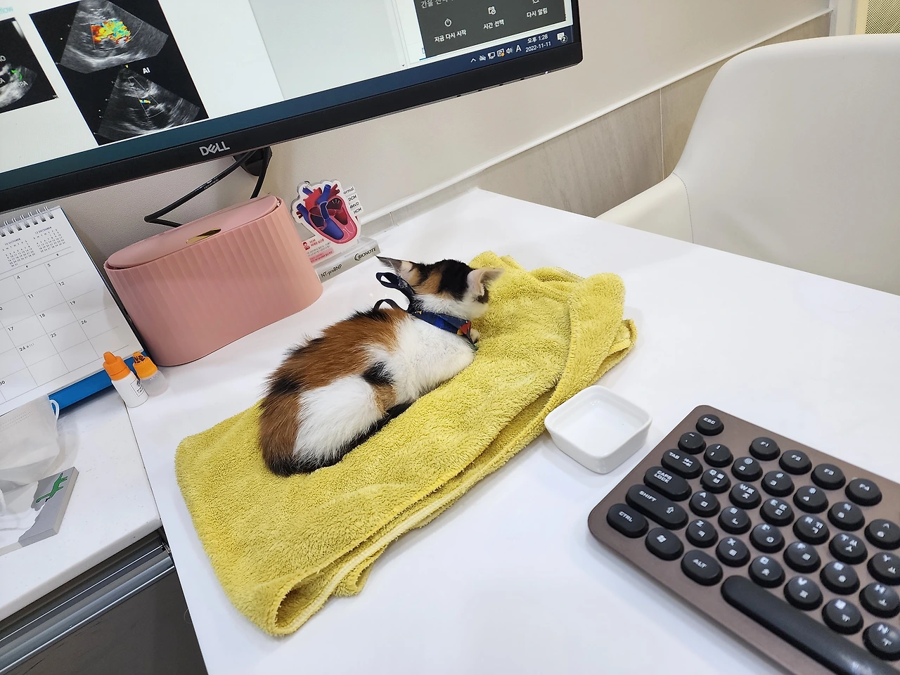 현재는 따뜻한 곳에 앉아 골골송 부르는 게 취미인 키티. 호기심 많고 사람의 온기를 좋아하는 아가 키티.