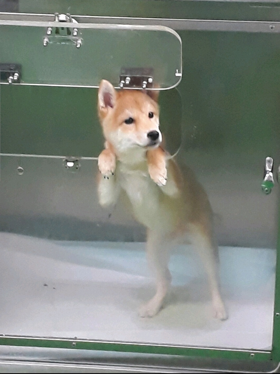 하고 A는 한 장의 사진을 내밀었다(A는 수의 외과학 실험실 학부생이었다). 사진 속에는 ICU (intensive care unit, 집중치료실)의 작은 창에 가냘픈 얼굴을 빼꼼히 내민 채로, 궁금하다는 듯 밖을 바라보고 있는 아기 시바견이 있었다. “당연하지.” 필자는 궁금하거나 신기한 게 있으면 꼭 봐야 되는, 전형적인 ENFP 타입인데 이렇게 귀엽기까지 하다니 마다할 이유가 없었다. 하지만 그때까지만 해도 우리는 일개 학부생일 뿐이라, 실습 시간 이외에 자유롭게 대학 부속 동물병원을 출입하는 것은 어려운 일이었다. 또한 언제 어떤 환자가 올지 모르는 동물병원의 일정과 병원 구성원 분들의 분주한 발걸음 때문에 이를 피해 그 친구를 몰래 구경하기란 꽤나 어려운 일이었다. 한동안 기회가 날 때까지 막연히 기다리는 수밖에 없었는데, 기다림의 시간 동안 나도 모르게 두근거리는 기대와 궁금증은 쌓여만 갔다.