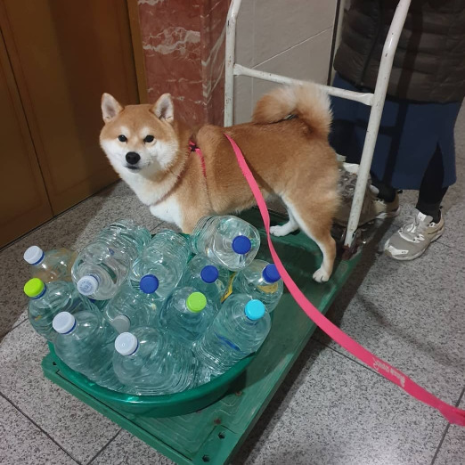 엄마 아빠가 약수터에서 물을 길어오면 냉큼 수레에 올라타서는 내려오지 않는 하쿠처럼.