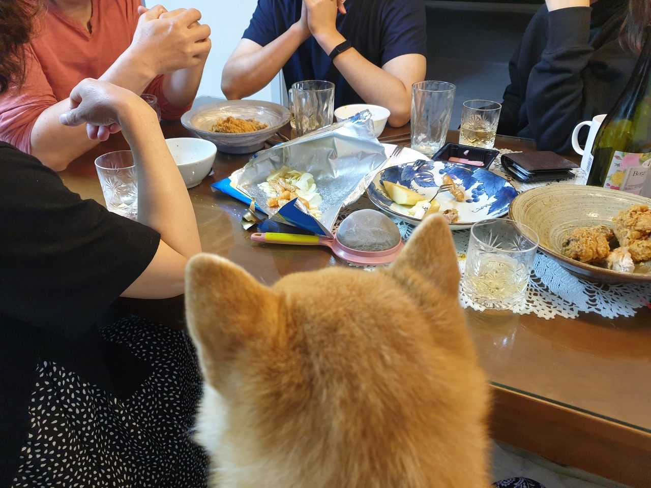 가족모임에 참여한 하쿠의 뒤통수. 사뭇 진지하지만 1도 알아듣지 못한다