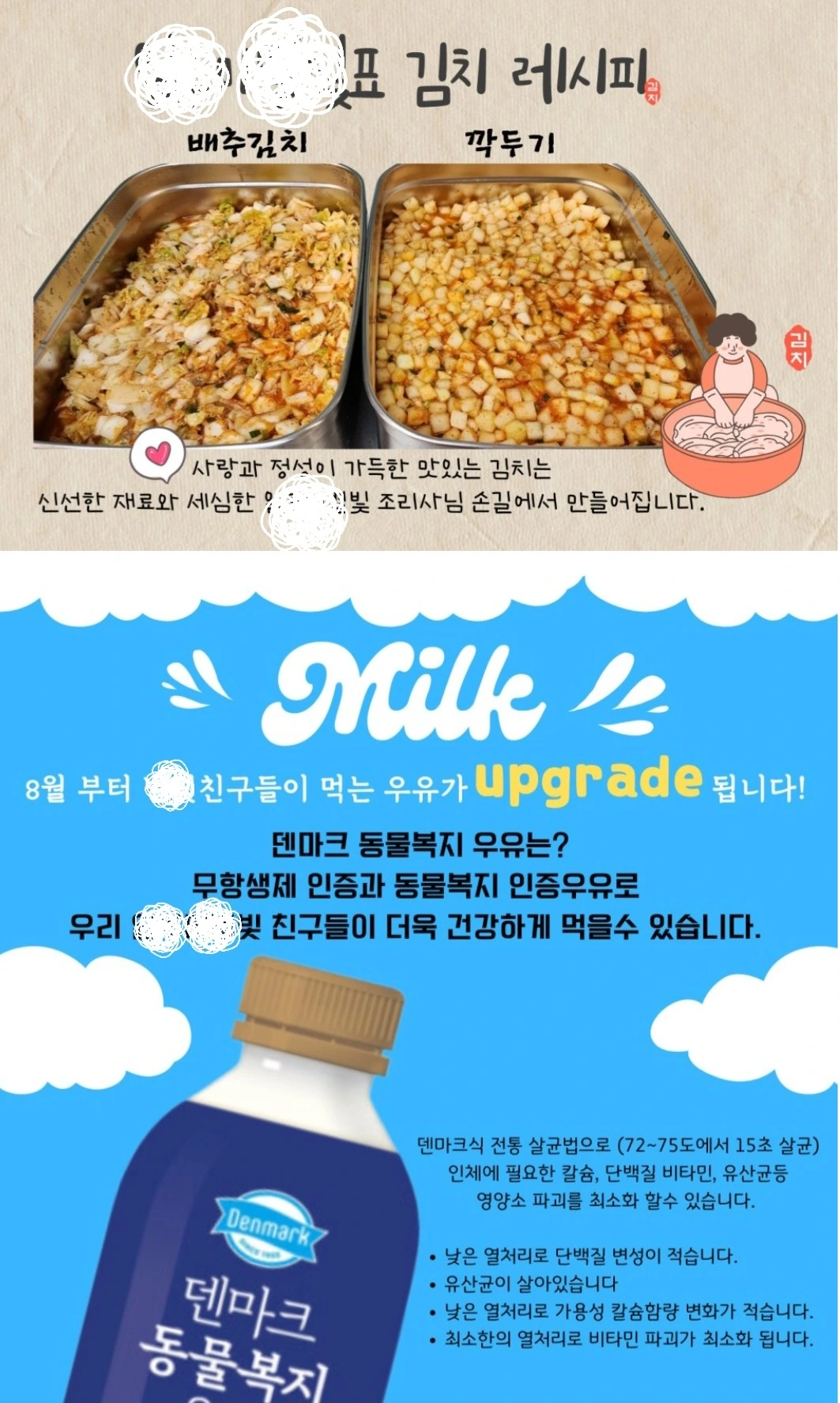 그러면 7세 기준으로 올리는 키즈노트의 식단사진에 동물복지우유가 제공되고 있음을 가정에서도 알 수 있고, 아이들도 개별우유를 더 선호할 거라고 설명하였다.