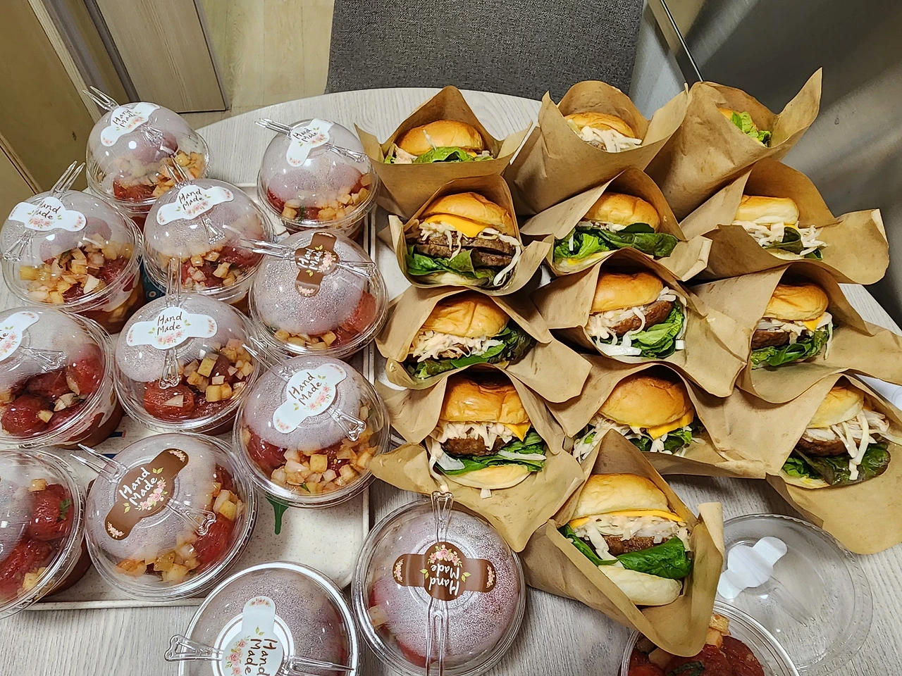 가끔은 사비로 미니 햄버거나 샌드위치 같은 특별한 간식을 해 줄 때도 있다.