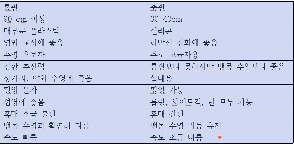 롱핀/숏핀 무슨 용도인가? 언제? 누가? 착용하면 좋은가?