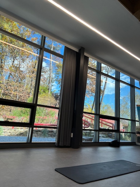 요가 강사님의 조용한 목소리에 따라 그리 어렵지 않은 명상 요가 동작을 따라 했다. 매트에 등을 대고 누워 여러 높낮이로 울리는 종소리를 듣다 보니 새벽의 분주함이 잊히며 스르르 잠도 온다. 혹시라도 옆에 있는 남편이 평소처럼 코라도 골까 슬쩍 돌아봤지만 다행히 눈이 초롱초롱하다. 몸을 이완시키고 정신을 풀어놓고, 가을바람에 살랑대는 이파리들의 우수수 소리에 집중해 본다. 자연 속에서 이런 시간을 가질 수 있다는 점에 감사하며 눈을 떴다.