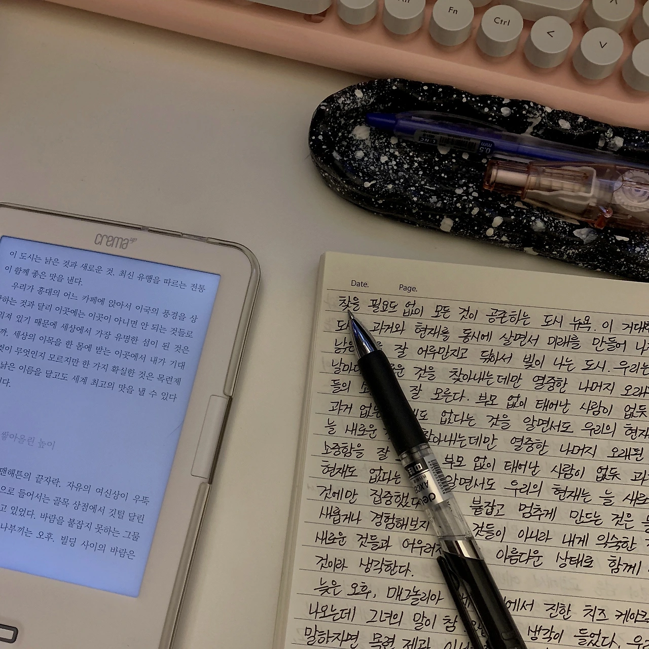 하지만 엄지손가락이 망가지니 펜을 잡는 것부터 어렵다. 당연히 그 촉감은 만질 수 없다. 어제도, 오늘도 꾹꾹 눌러쓰기를 실패했다. 개발새발 적힌 글씨를 읽고 있자니 뭐 한 건가 싶다. 그나마 키보드를 사용하는 데에는 문제가 없어 천만다행이다. 하지만 아쉽다. 손맛이 아쉽다. 글을 쓰고 싶다.