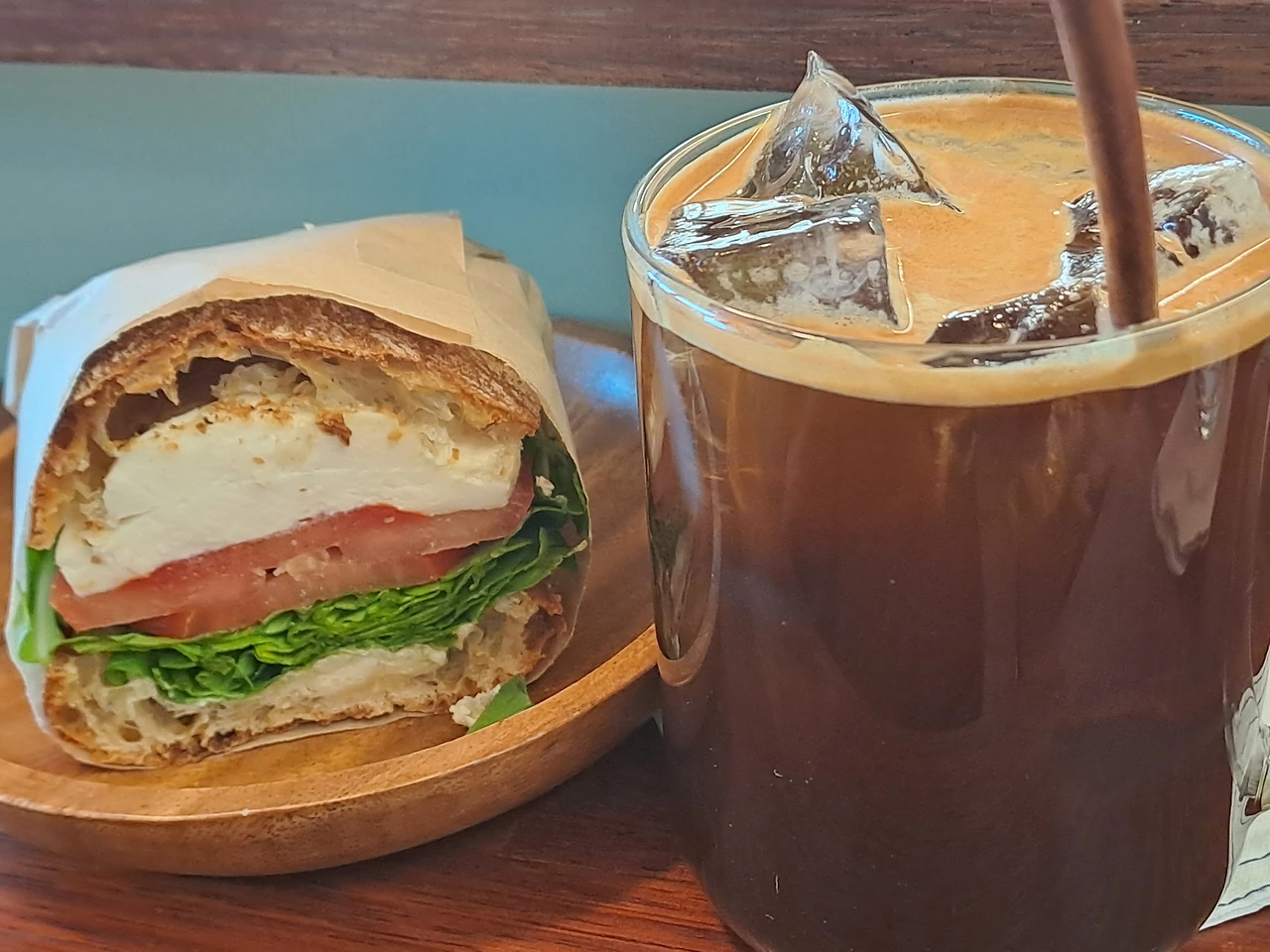 강아지들 산책을 마치고, 여유롭게 샌드위치와 커피로 하루를 시작해요.