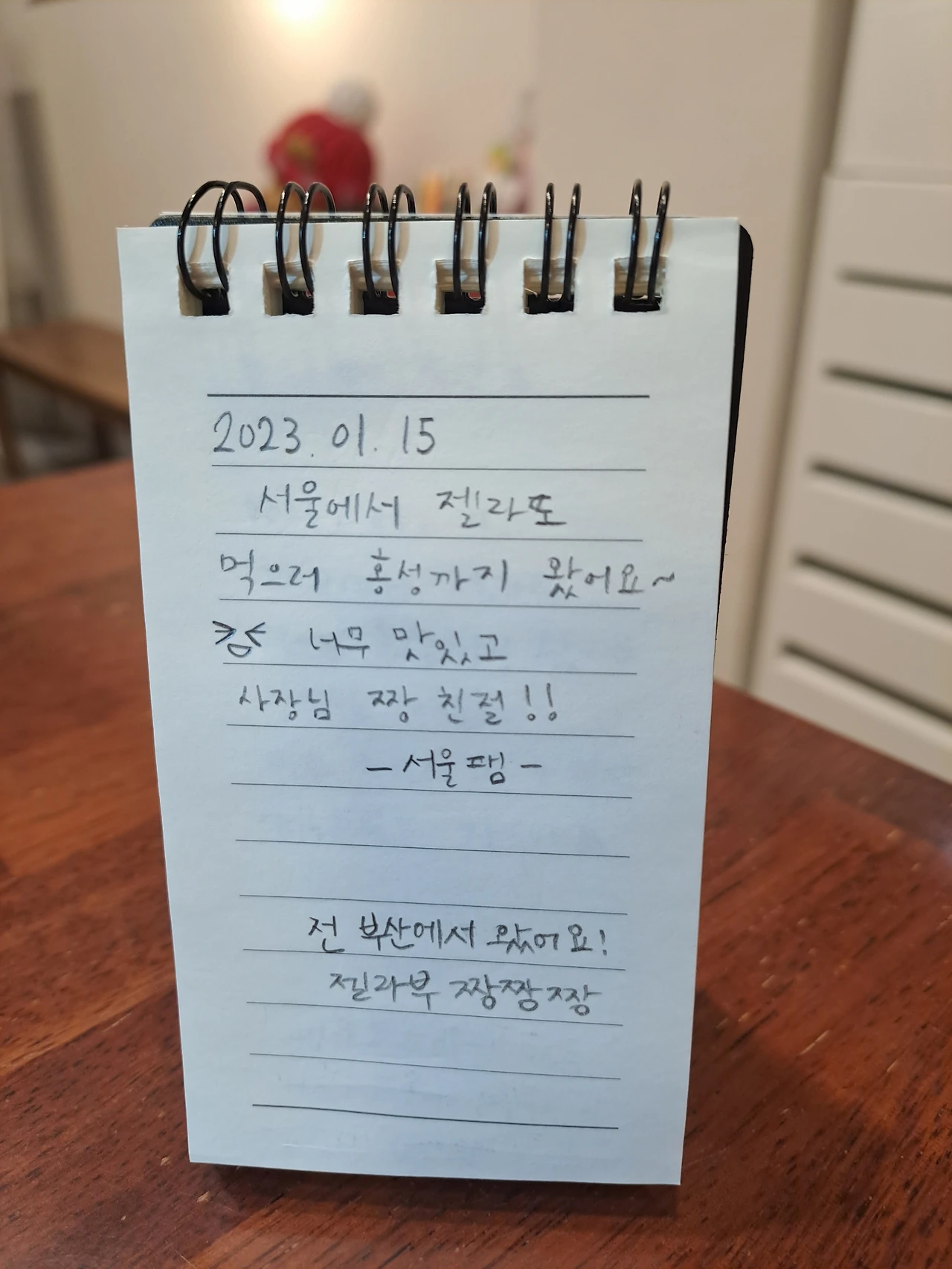 1월을 마무리하며 손님들이 남겨주신 방명록을 쭉 읽어 봤어요. 추운 날씨에도 많은 분들이 젤라부에 방문해 주시고 인상적인 글과 그림을 남겨주셨어요.