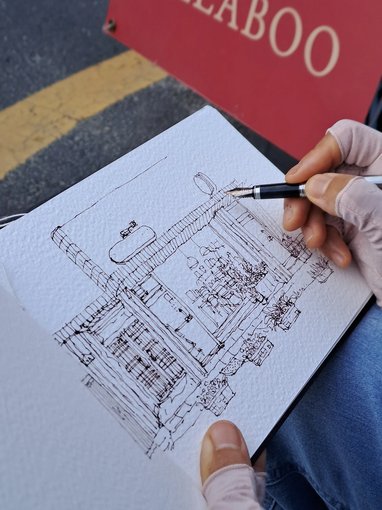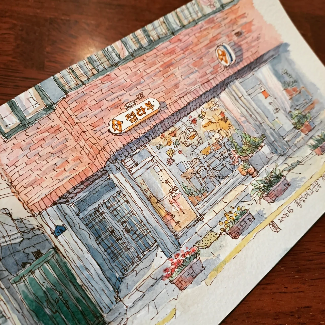 한 여성분이 매장 맞은편 담벼락 아래에서 무엇인가 열심히 하고 있는 거예요. 처음에는 조금 당황했지만, 궁금한 마음에 나가보니 젤라부 풍경을 그리고 계시더라고요.