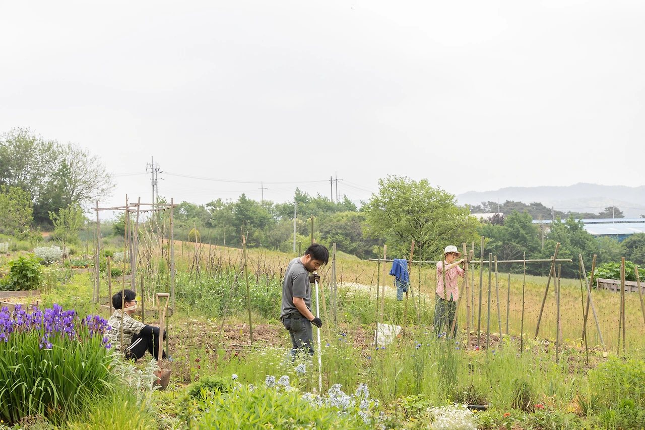 “서울에서 4년 정도 발달장애를 가진 청년들과 매주 만나는 기회가 있었는데 그때 발달장애 대해 조금 이해할 수 있었어요. 홍성에 내려온 후 나중에 제 농장을 갖게 되면 그곳에서 이주민과 발달장애 친구들이 함께 지내는 모습을 막연하게 상상하기도 했죠. 서울에서의 경험과 홍성에서 꿈꾸는 미래가 있었기에 꿈뜰의 제안을 더 빨리 수락했던 것 같아요. 발달장애 학생들이 정원활동을 경험하는 것으로 시작해서 지금은 방과 후 수업으로 일주일에 2시간씩 텃밭 농사를 짓는 수업으로 꾸준히 만나고 있습니다. 이 수업은 초등학교부터 고등학교까지 쭉 이어져요. 재작년부터는 학교를 다닐 때 만났던 친구들이 ‘꿈이자라는뜰’에서 다시 만나 같이 일하기 시작했죠.”