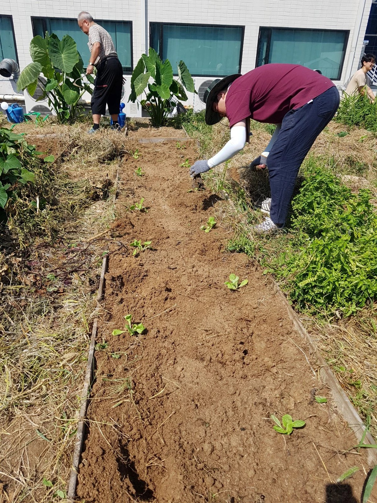 잎 채소류의 경우에는 손가락으로 땅에 선을 그은 후 줄뿌리기를 합니다. 초반 2~3번 솎아주고 작물간 간격을 두며 솎아주면 된다고 하네요. 솎아주는 부분은 다음에 작물이 좀 자라면 그 때 알려드리도록 하겠습니다.