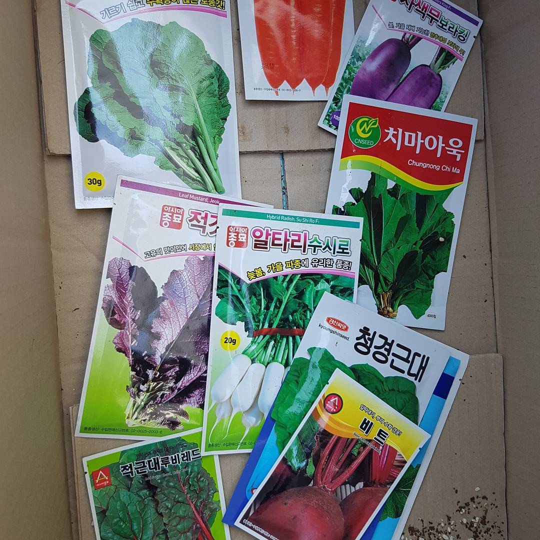 배추(모종), 무(모종), 쪽파(씨), 로메인 상추(모종), 당근(씨), 알타리(씨), 상추(모종), 갓(씨)을 심었다.