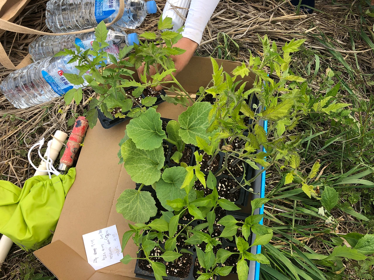 시기적절하게 홍동 봄맞이 장이 열려서 모종도 쉽게 구할 수 있었다. 토마토, 고추, 호박, 수박, 참외, 바질, 오레가노를 구입(약 2만원)했고 일차적으로 밭에 심어주었다.