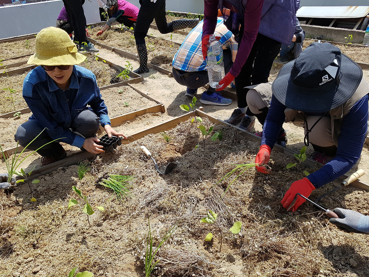 약 20명의 사람들과 함께 텃밭을 가꿨다.